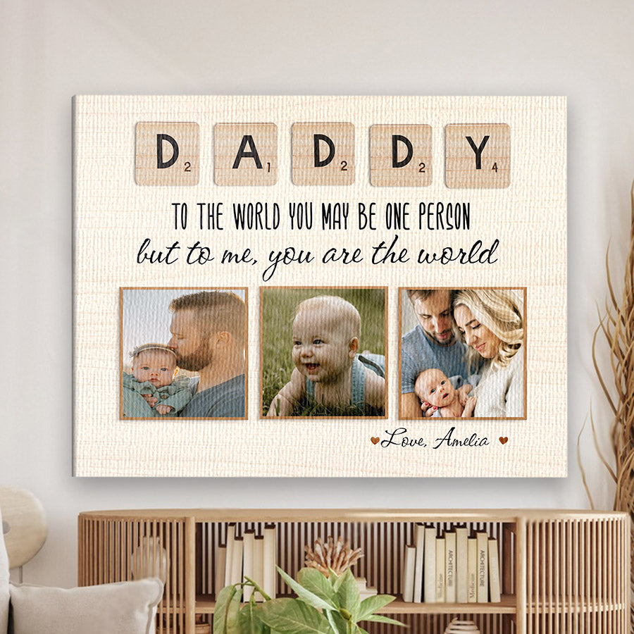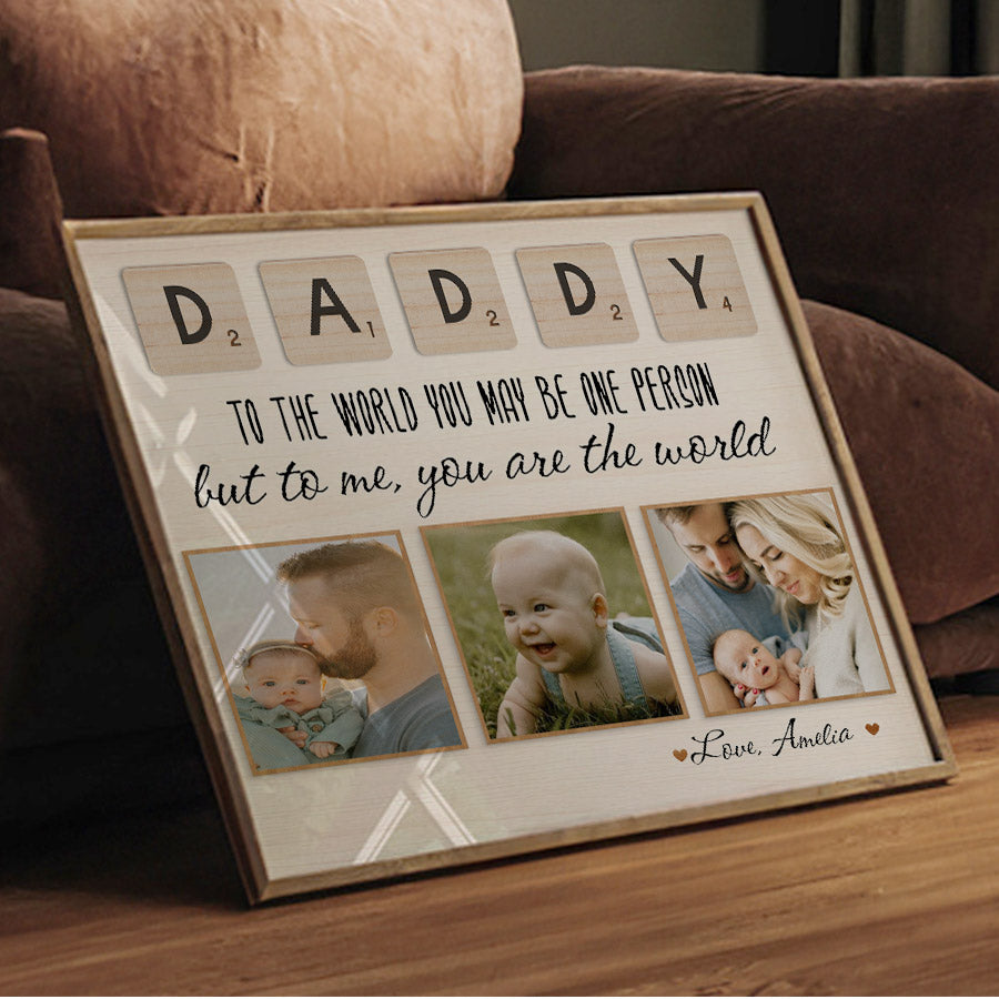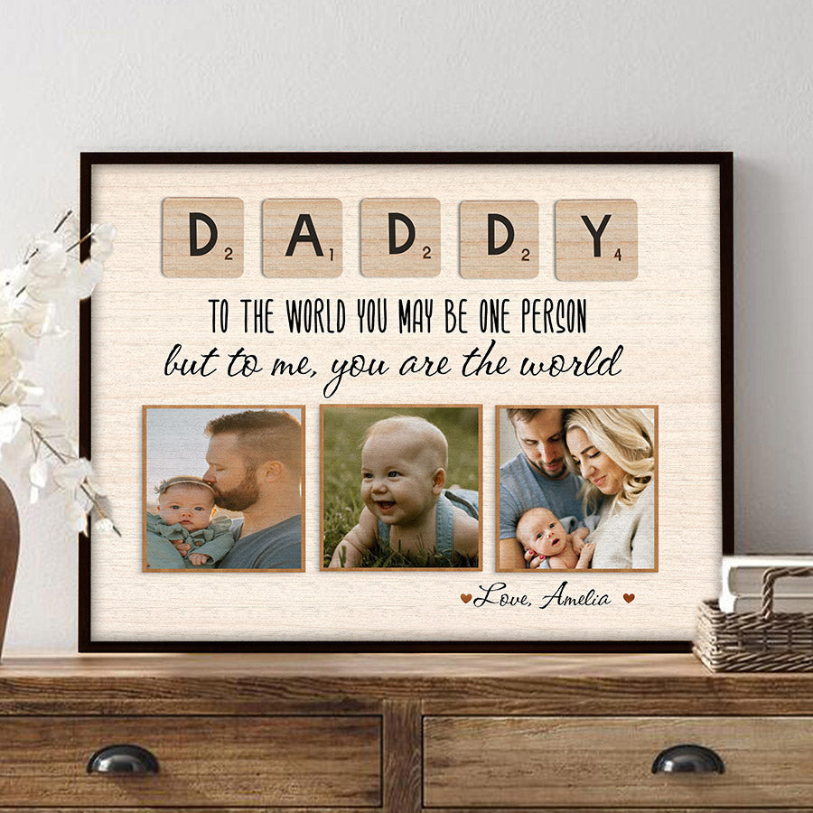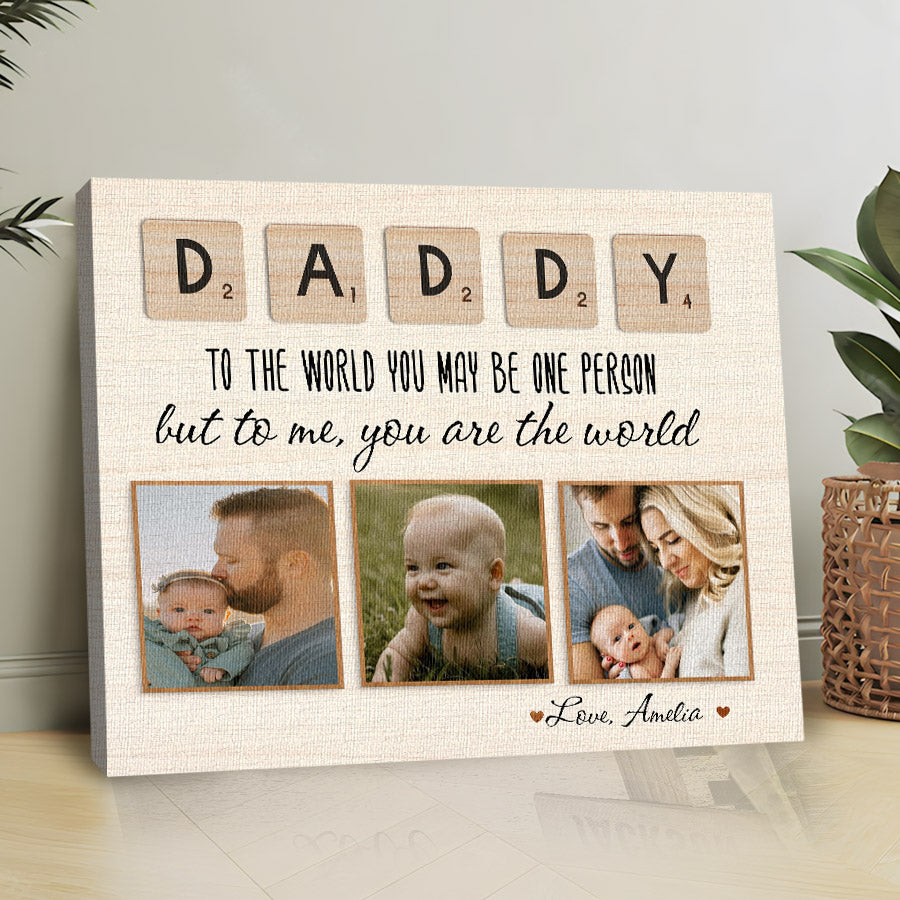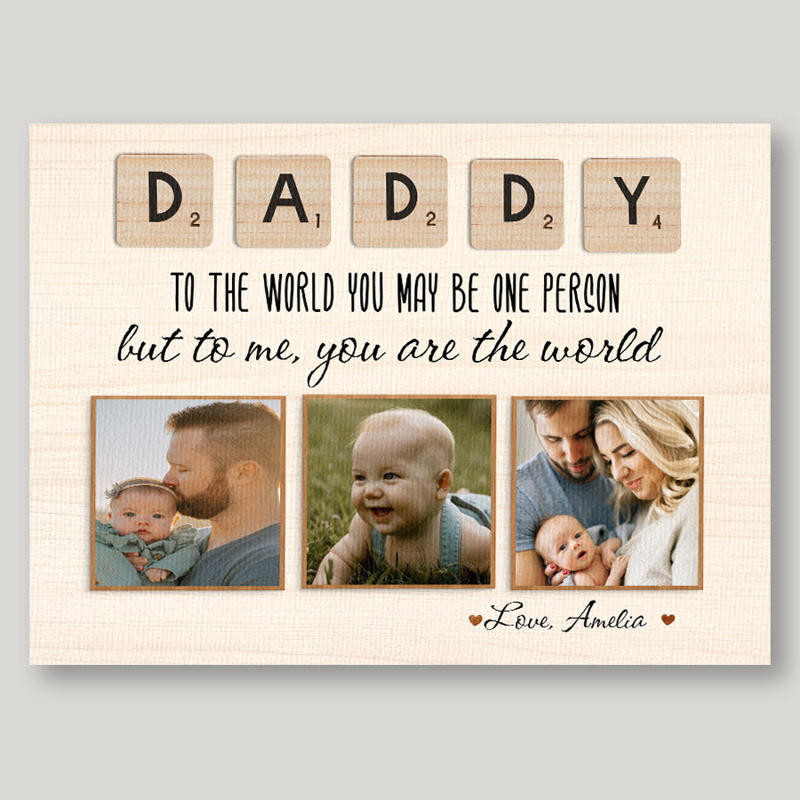 Treat the new dad in your life to first fathers day gift | gifts for first fathers day that commemorates the baby's arrival and his first Father's Day. Our personalized photo canvas is sure to bring a smile seeing little ones grow up before their eyes. Customize it FREE now - he will love displaying this treasured memory for many years to come.