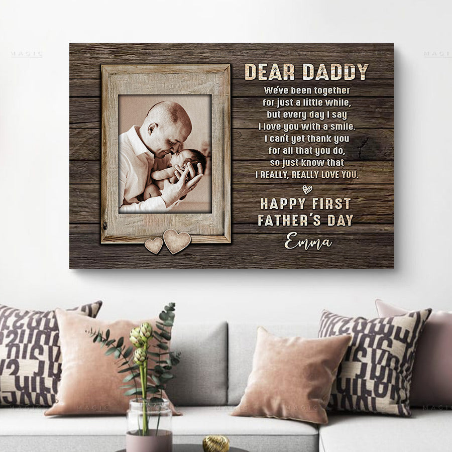 Come and shop now! Make first fathers day gifts by giving a canvas print to welcome the new dad into this journey of a lifetime. May cherished memories unfold with each glance at their treasured keepsake.