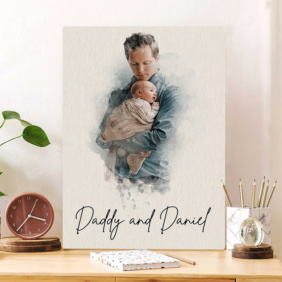 Celebrate the special bond between you and dad with a custom watercolor photo canvas. Perfect for preserving memories, this canvas makes a great first Fathers Day gift that dad will cherish for years to come. Create a unique and personal wall art piece with high-quality prints from your favorite photos.