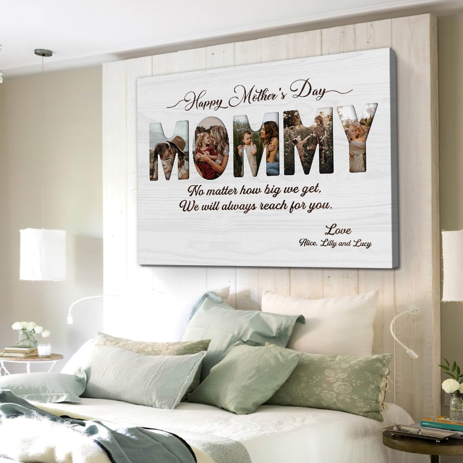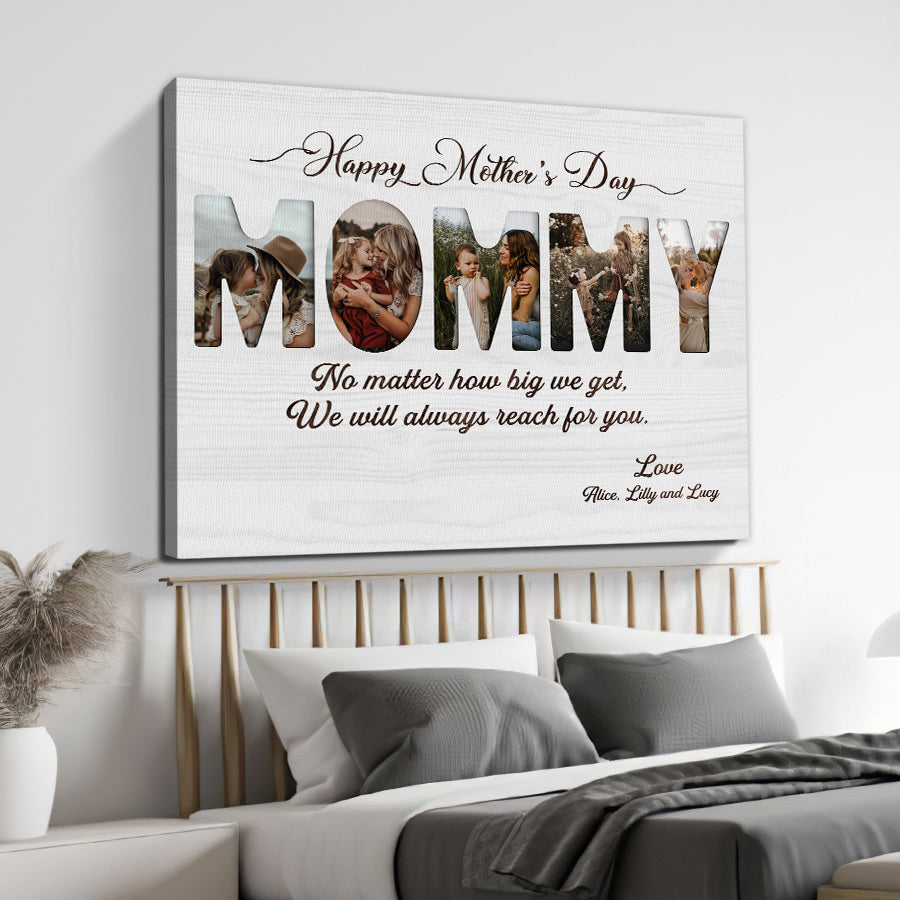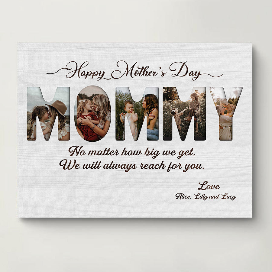 Giving our first mothers day personalized gift | mommy photo collage gift for first mom on Mother's Day is a meaningful gesture that goes beyond words. It's a way to honor the unconditional love, support, and guidance that mom has provided throughout the years. It's a heartfelt expression of gratitude for the countless memories and special moments shared together. Every time mom gazes at this custom canvas, she'll be reminded of the profound bond and love that you share.