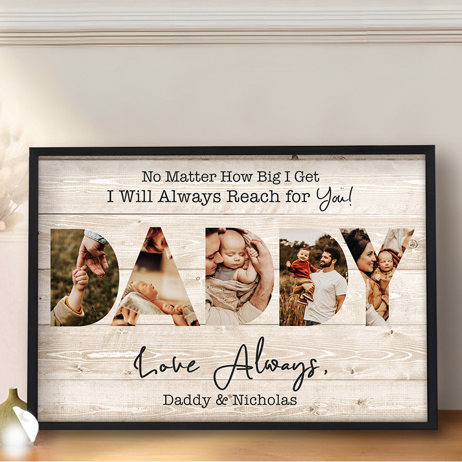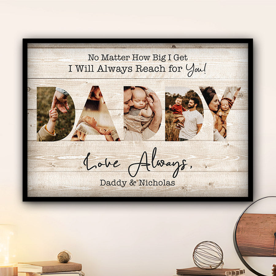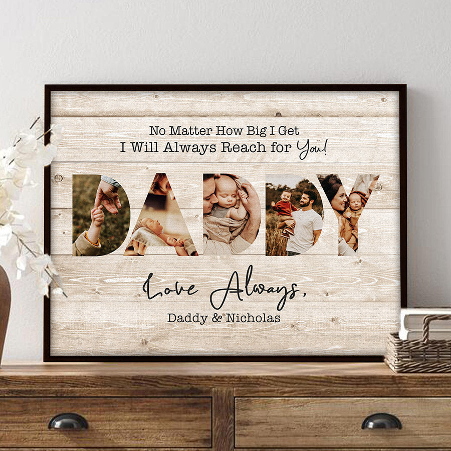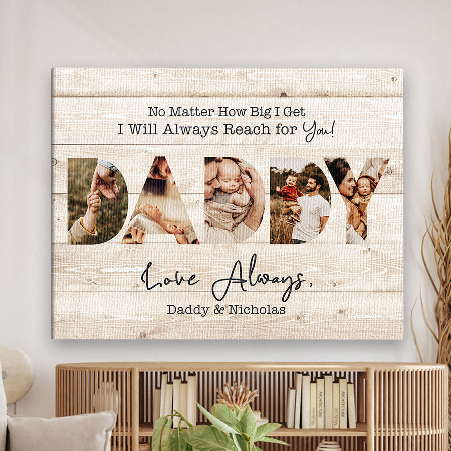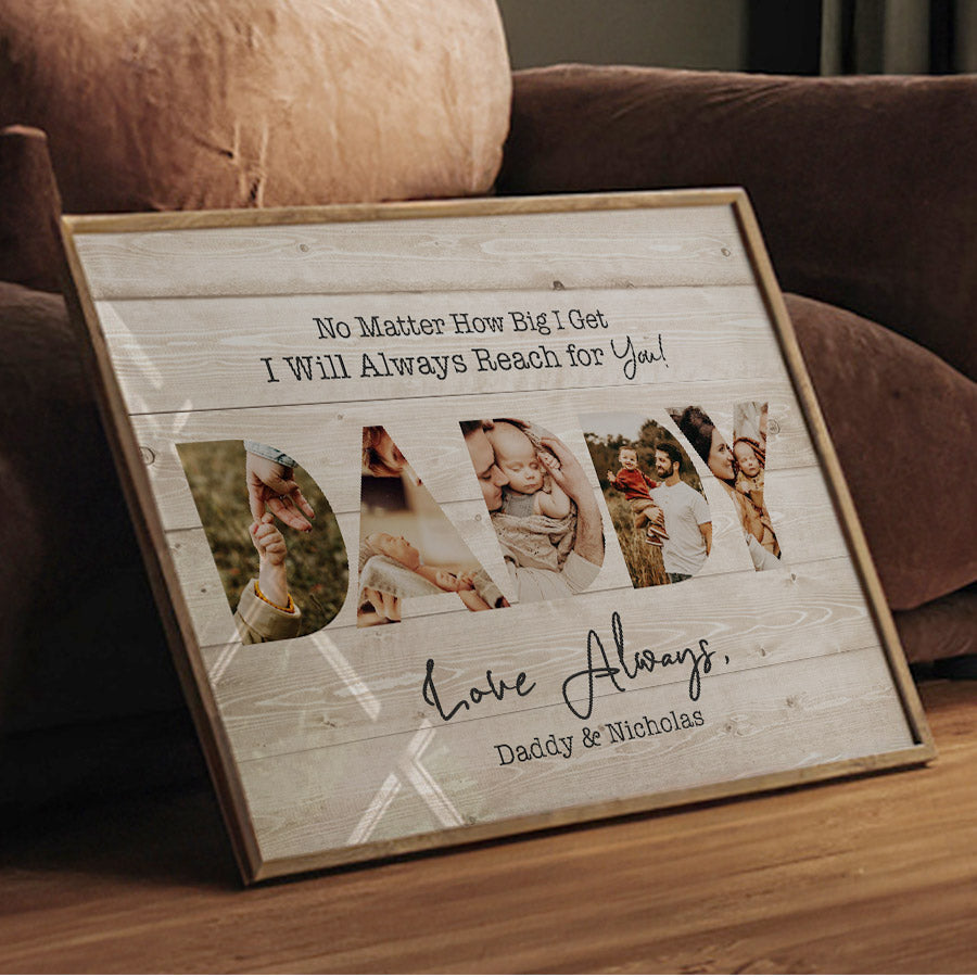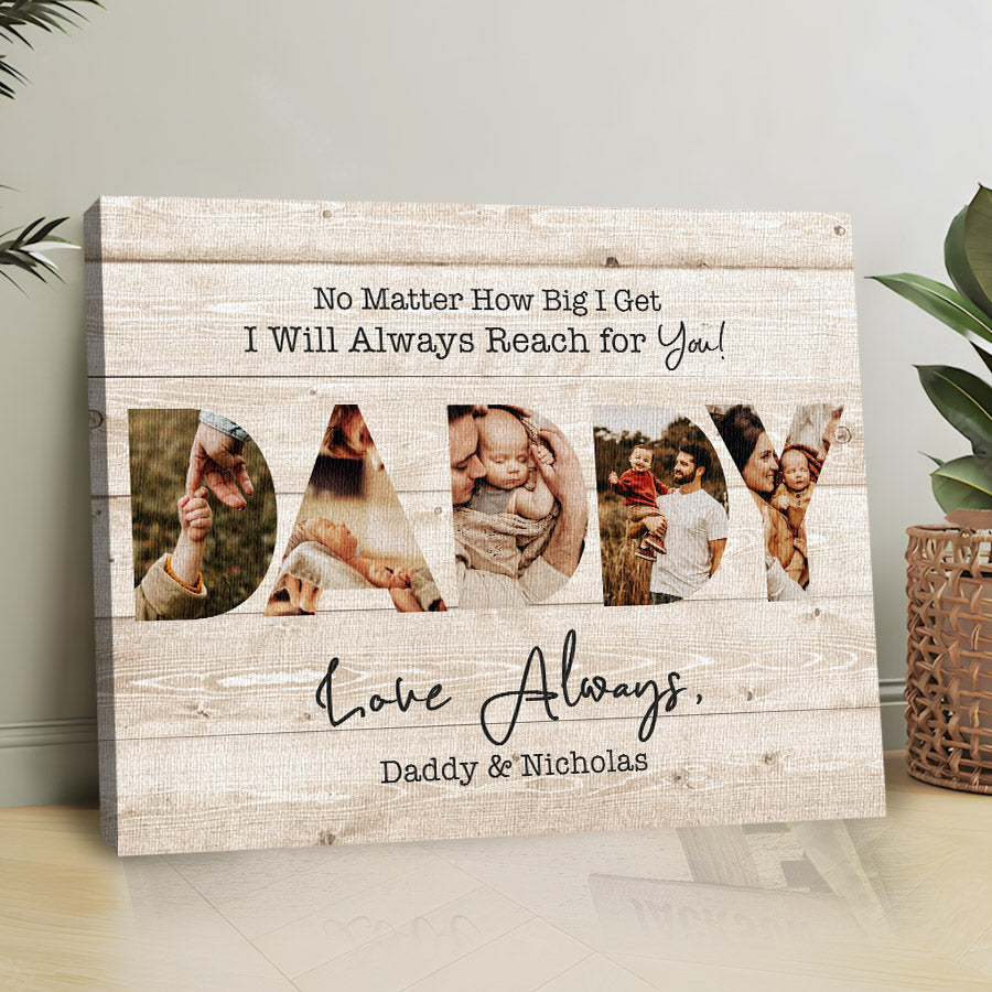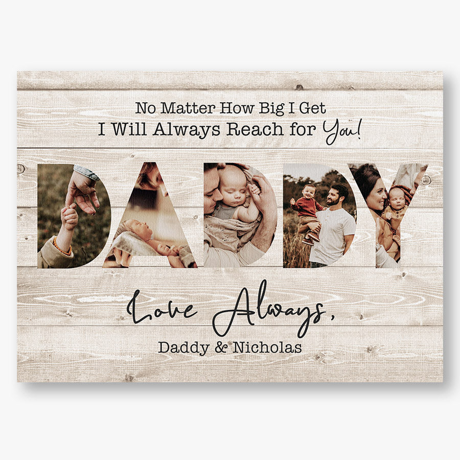 Treat the new dad in your life to first time dad father's day gift | 1st fathers day gift that commemorates the baby's arrival and his first Father's Day. Our personalized photo canvas is sure to bring a smile seeing little ones grow up before their eyes. Customize it FREE now - he will love displaying this treasured memory for many years to come.