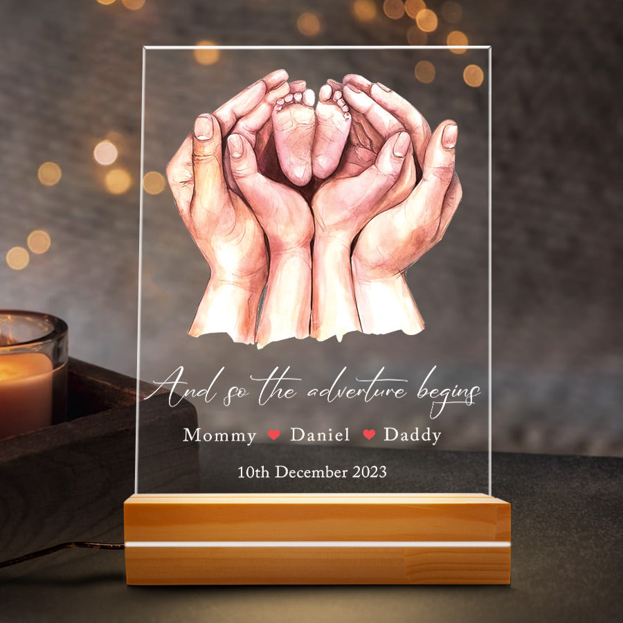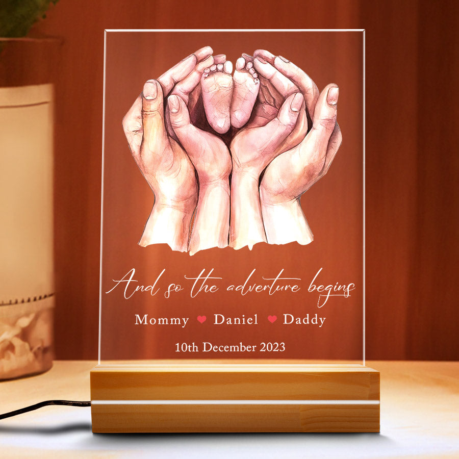 Give your new mom something she'll love with this custom acrylic plaque. Order today and get first time mothers day gift | family hands & baby feet print delivered in time for Mother's Day! Buy now.
