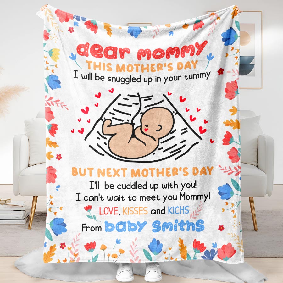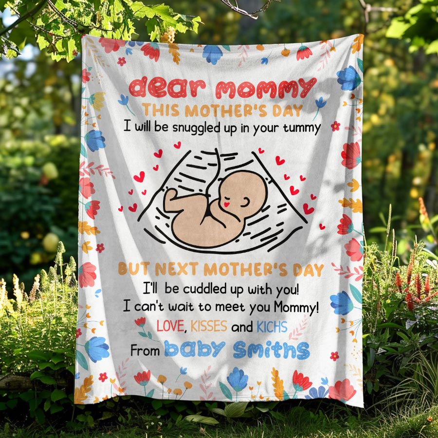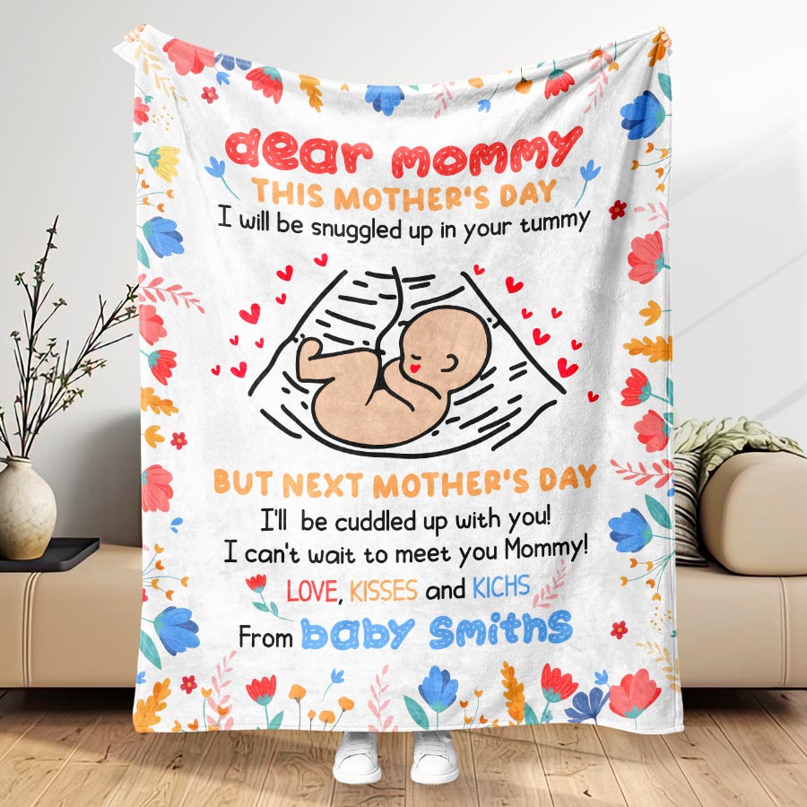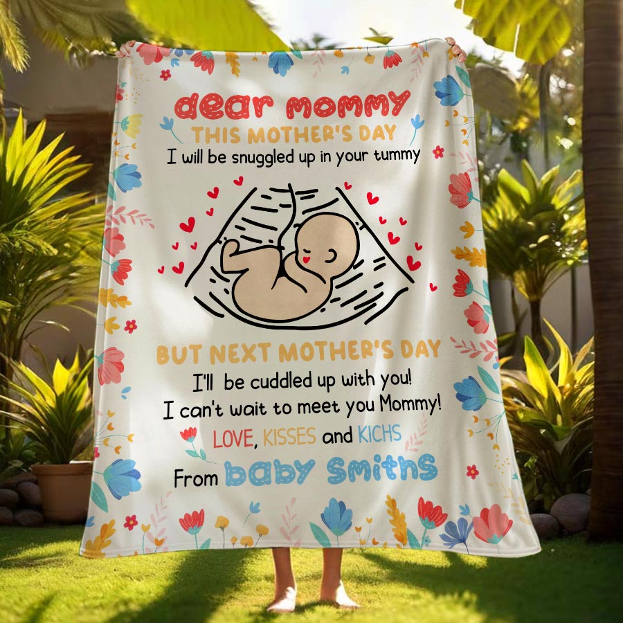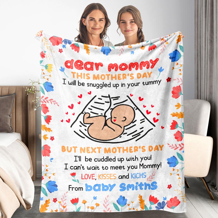 Wrap a new mom in love and warmth with our first time mothers day gift | dear mommy blanket. These extraordinary personalized first Mothers Day gifts are more than just a piece of art; it's a heartfelt tribute to the incredible woman who has made a lasting impact on your life.
