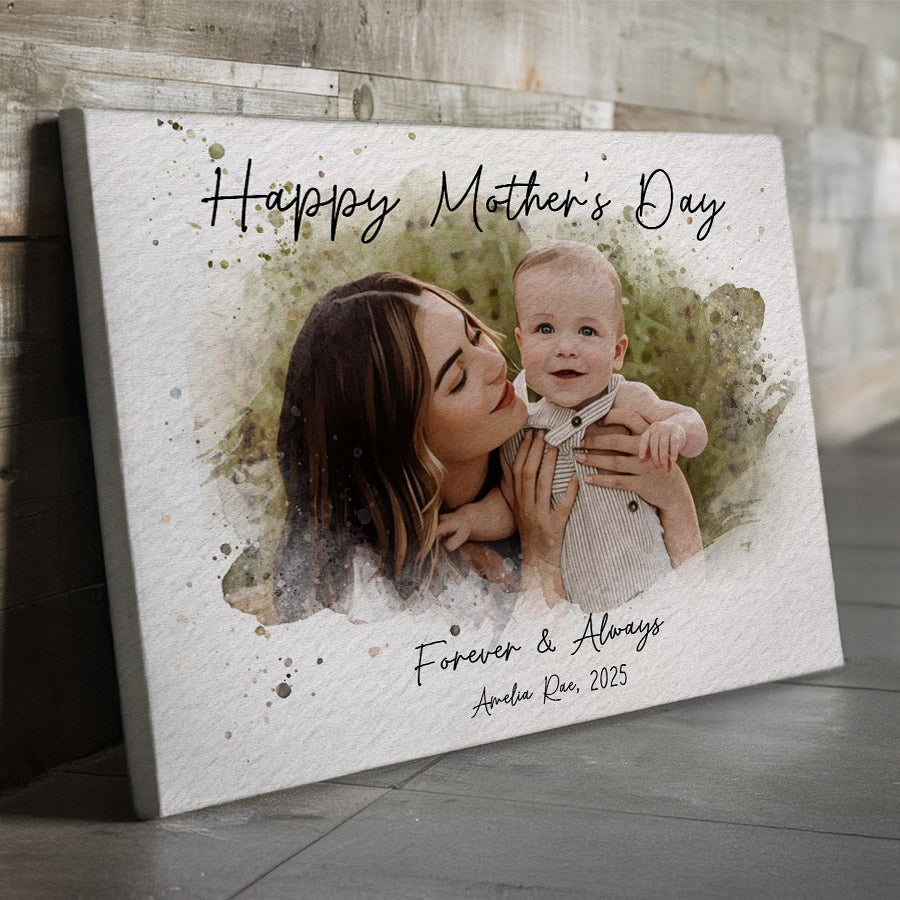 Make this First Mother's Day unforgettable with a first time mothers day gift | first mothers day canvas | personalized watercolor portrait gift for new mom that beautifully captures the essence of her journey into motherhood. Don’t wait—order your personalized First Mother's Day canvas today and give her a gift that speaks from the heart!
