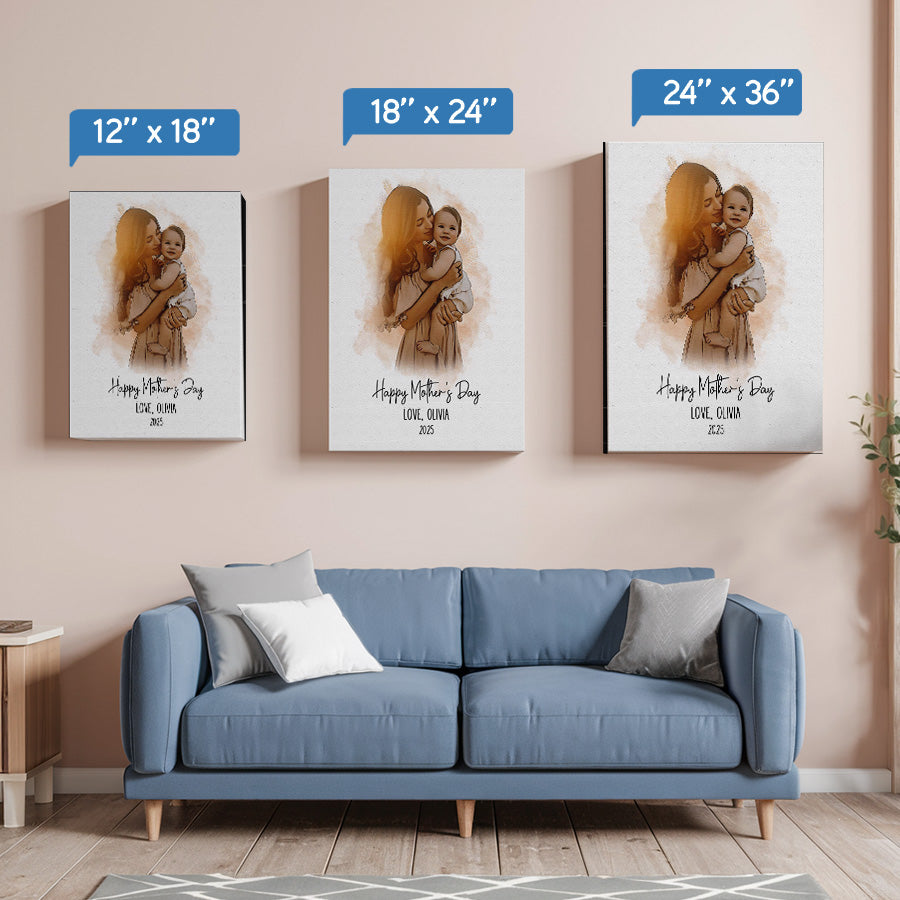 Make this First Mother's Day unforgettable with a first time mothers day gift | personalized watercolor portrait gift for new mom that beautifully captures the essence of her journey into motherhood. Don’t wait—order your personalized First Mother's Day canvas today and give her a gift that speaks from the heart!