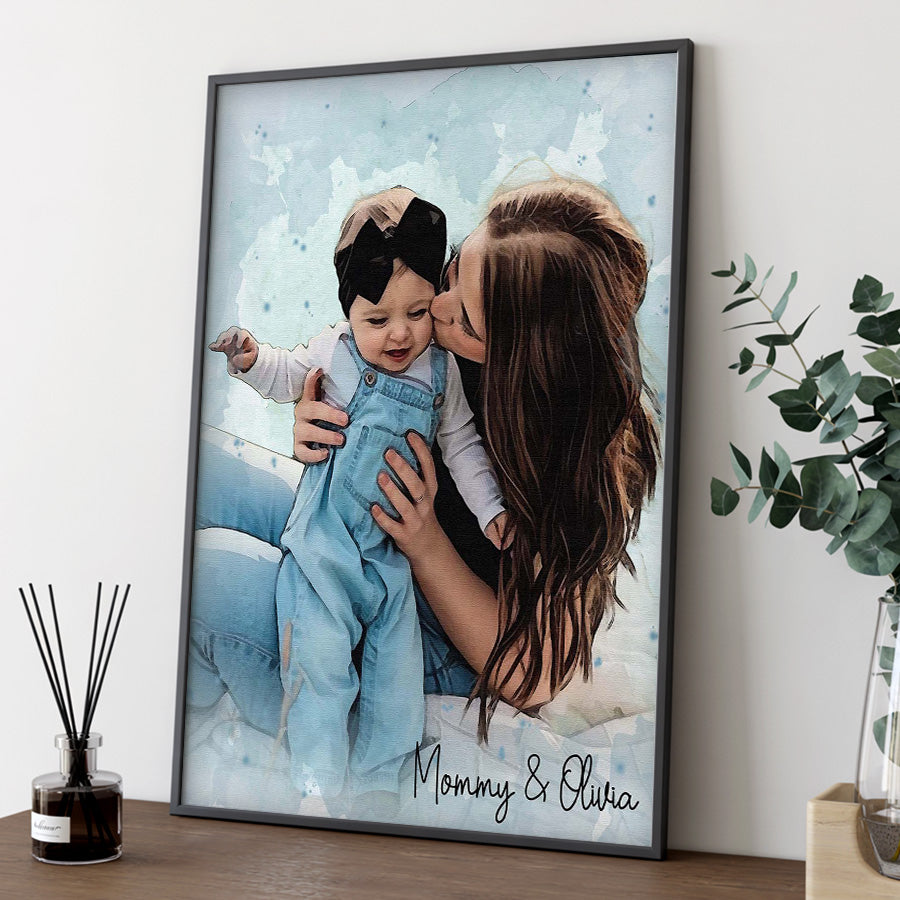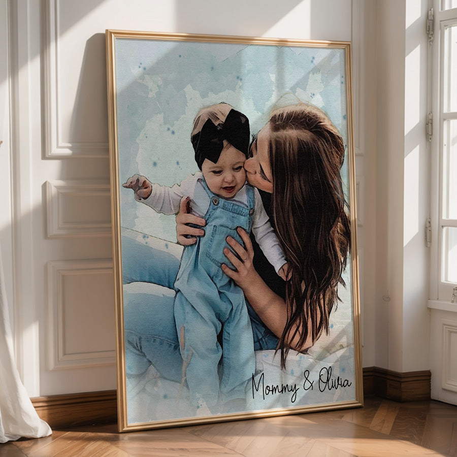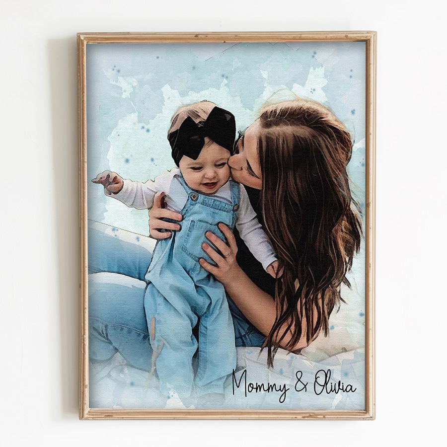 Make this First Mother's Day unforgettable with a first time mothers day gift | personalized watercolor portrait gift for new mom | gifts for the first time mom that beautifully captures the essence of her journey into motherhood. Don’t wait—order your personalized First Mother's Day canvas today and give her a gift that speaks from the heart!