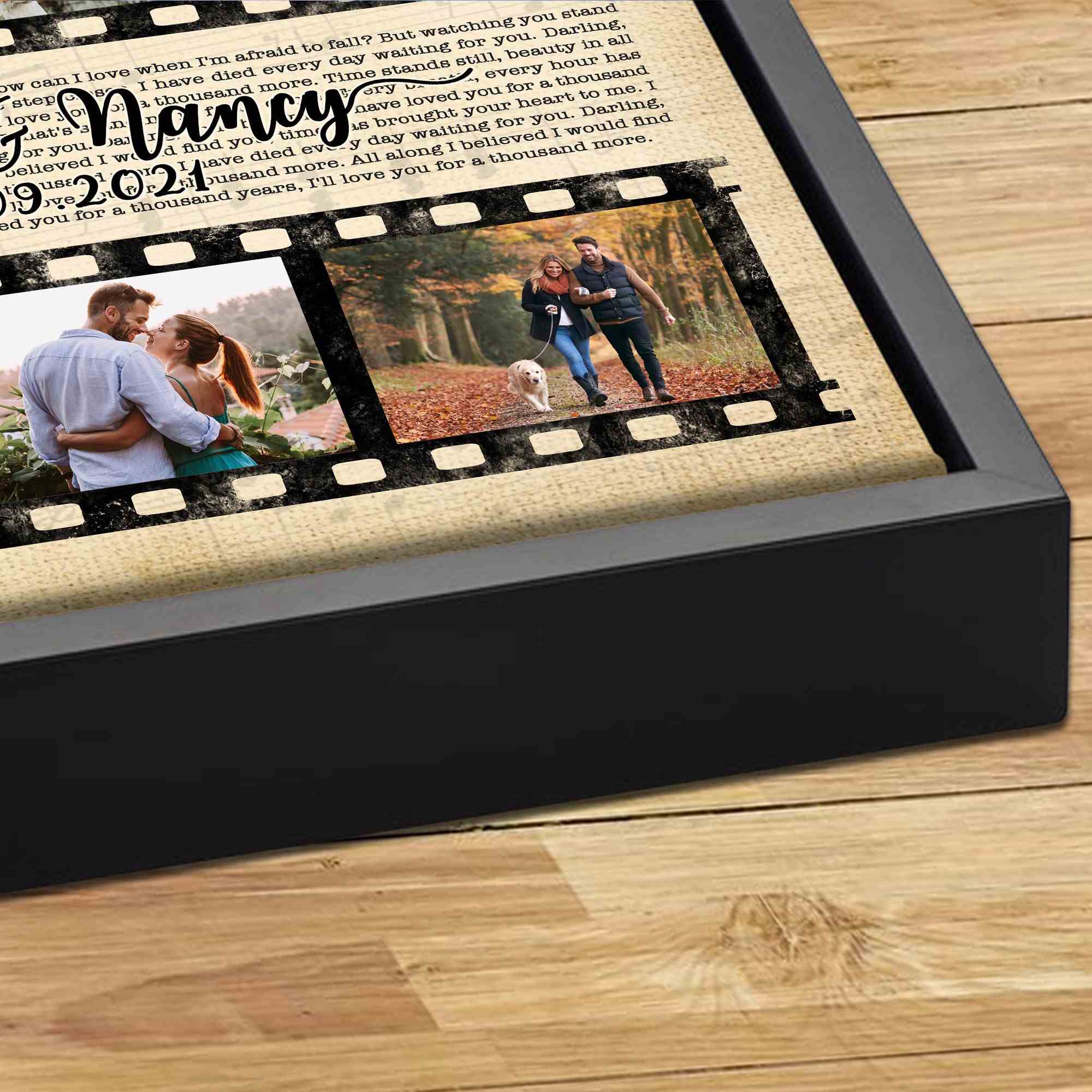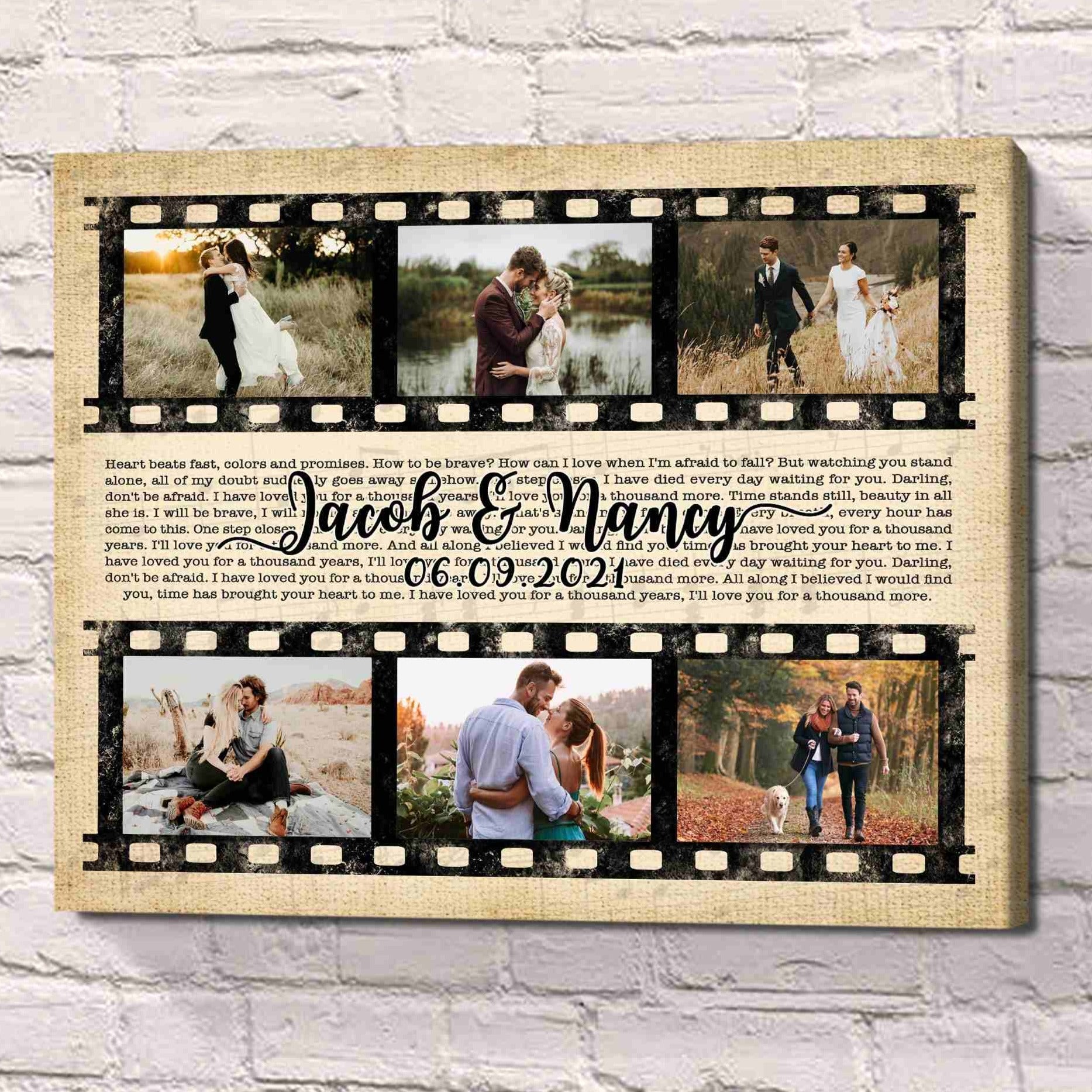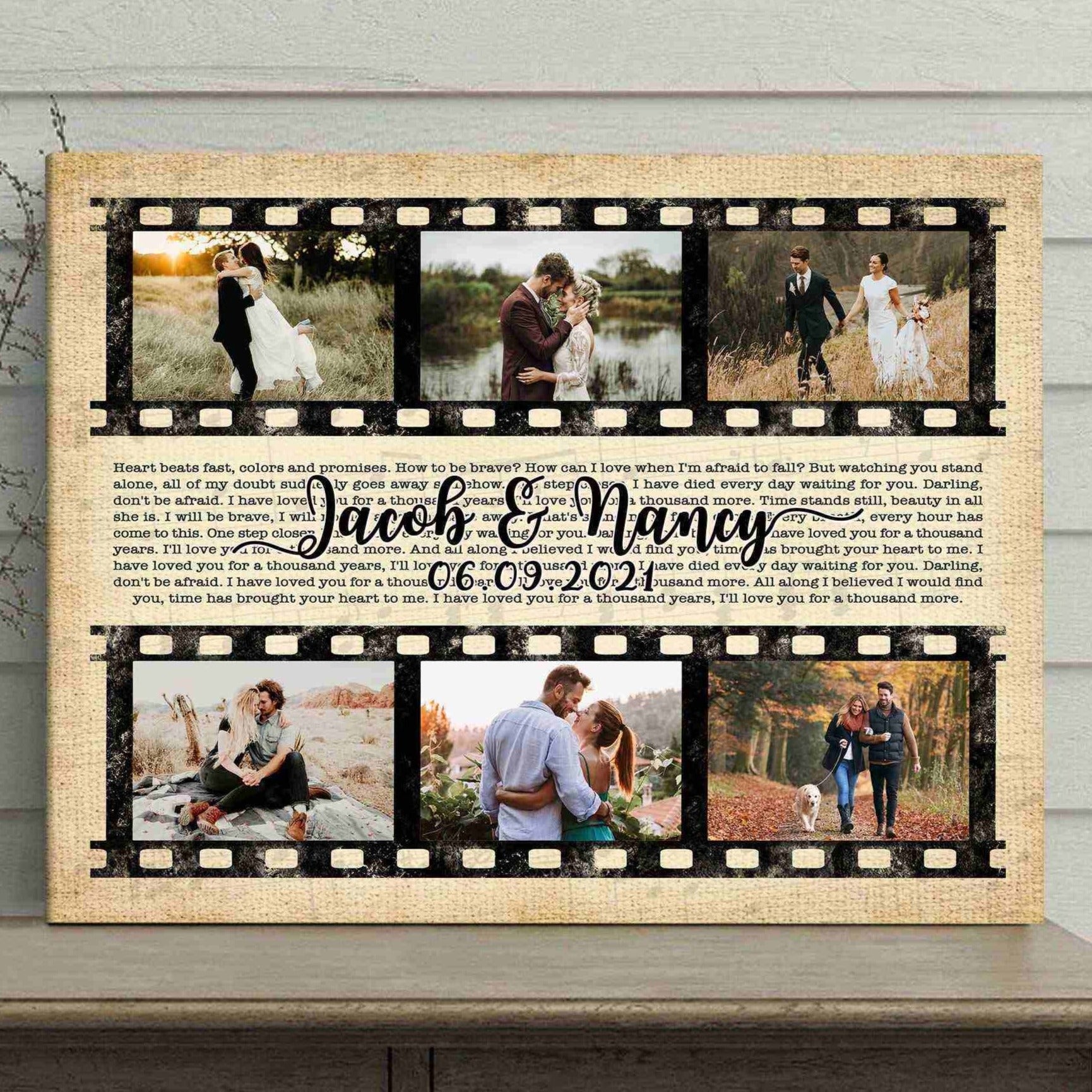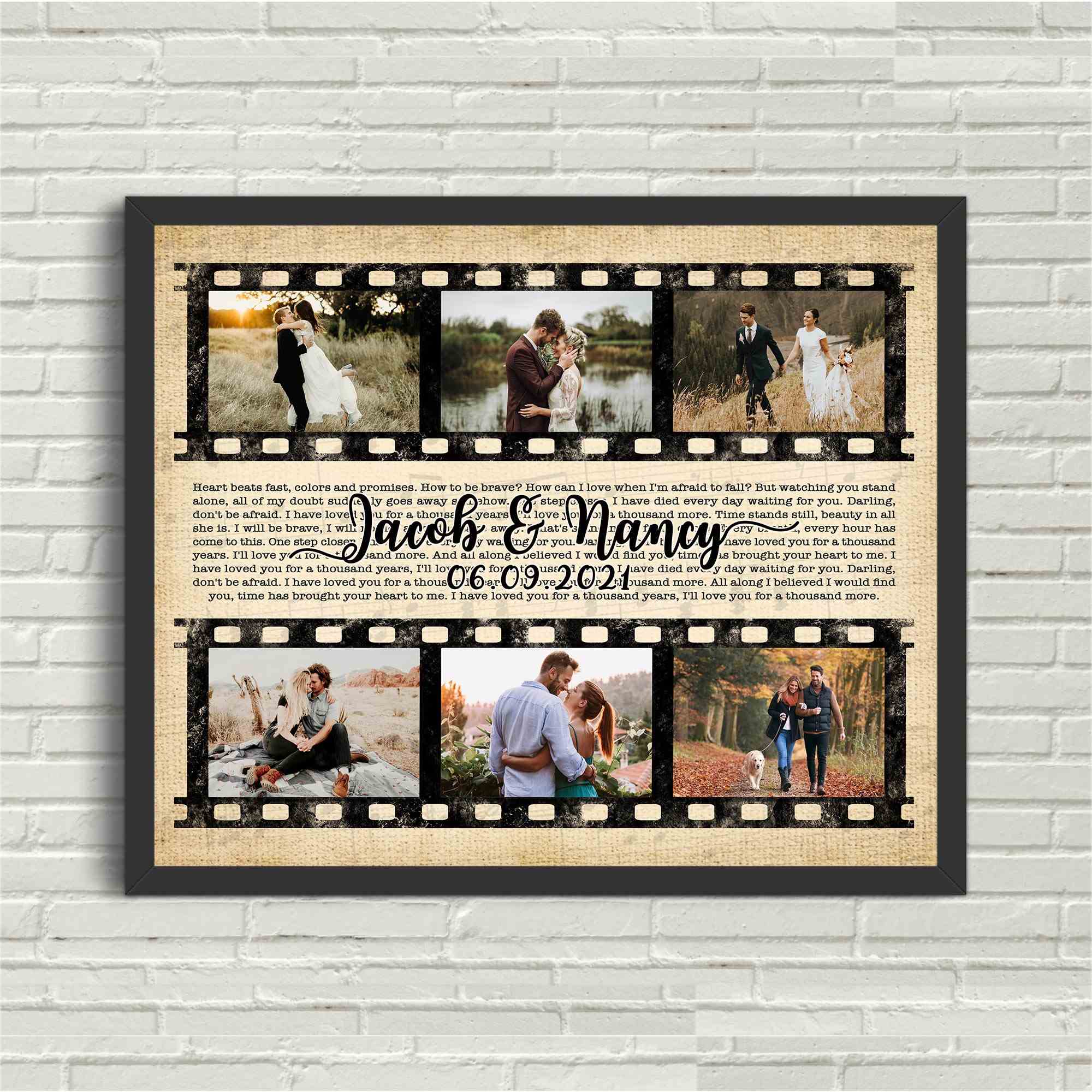 1 year anniversary gifts are what lovers choose to give on special first anniversary. This first wedding anniversary gift canvas is one of special anniversary gifts with custom picture and song lyrics, it is sure a one-of-a-kind gift for the other half!