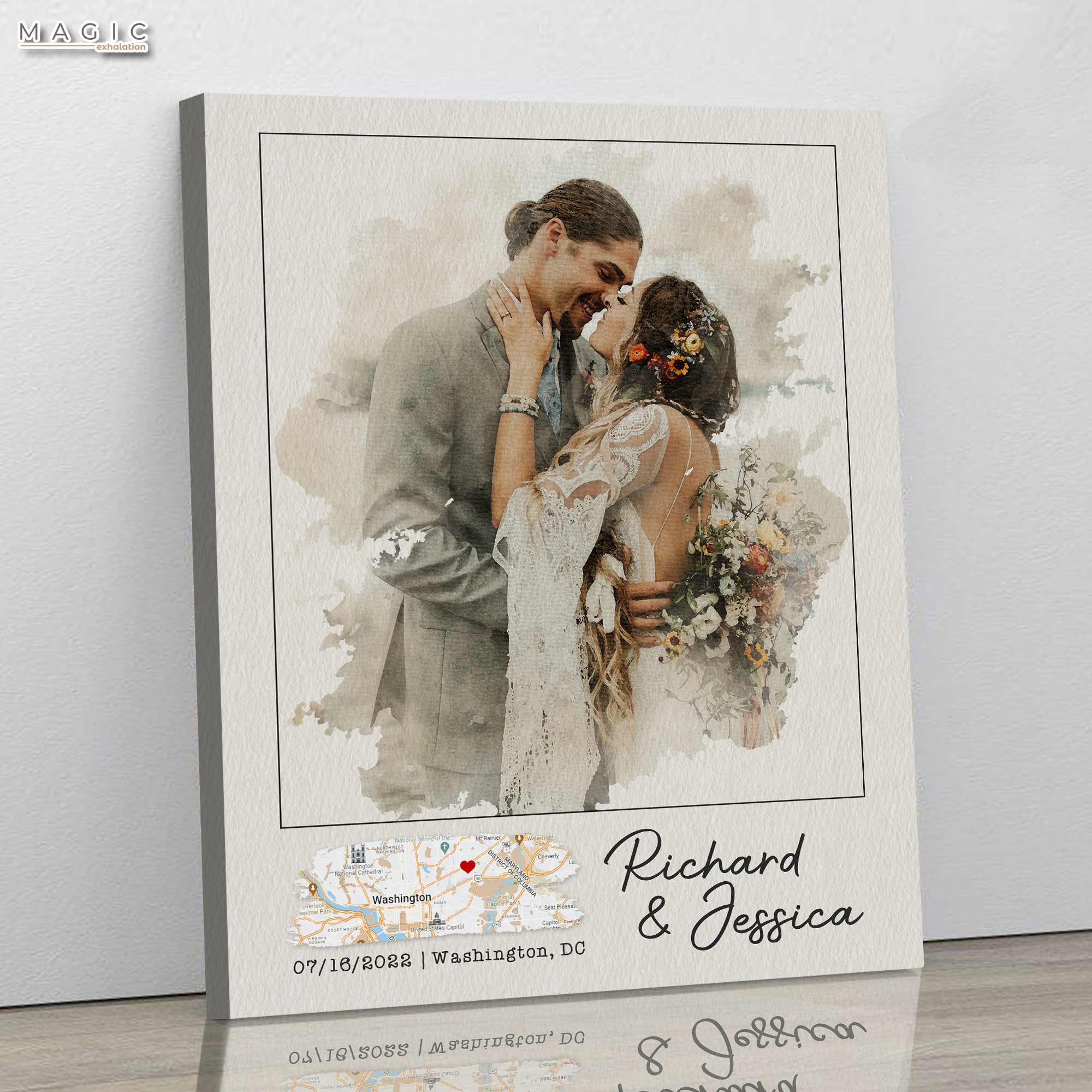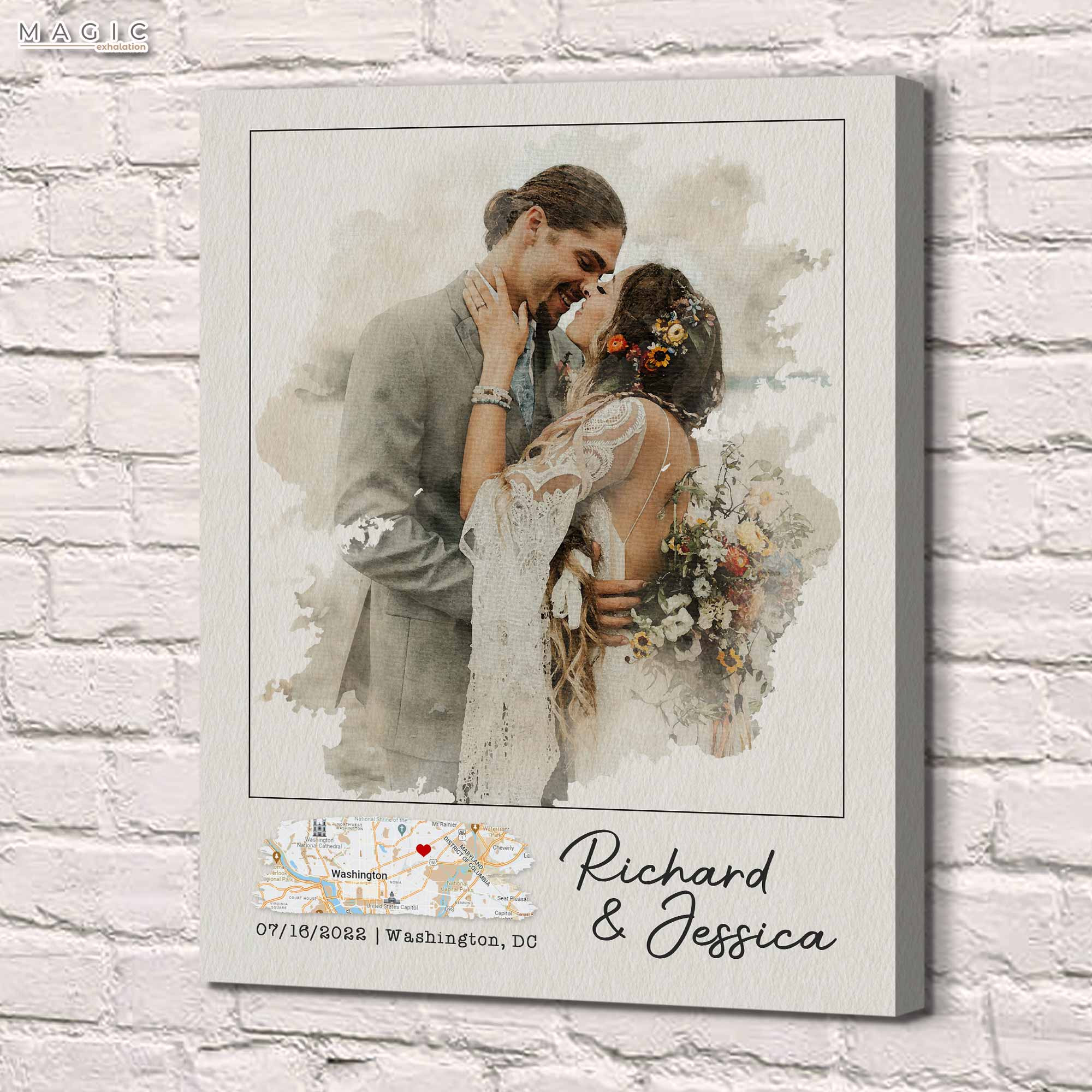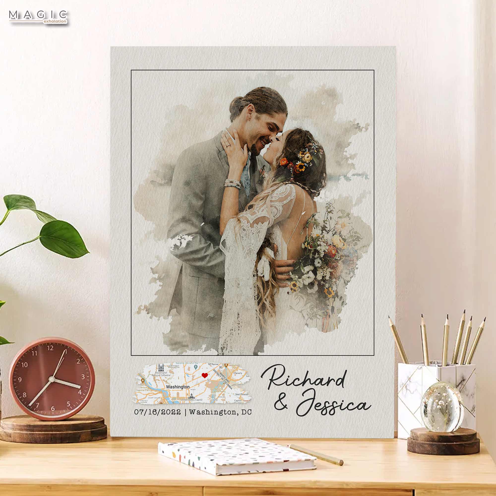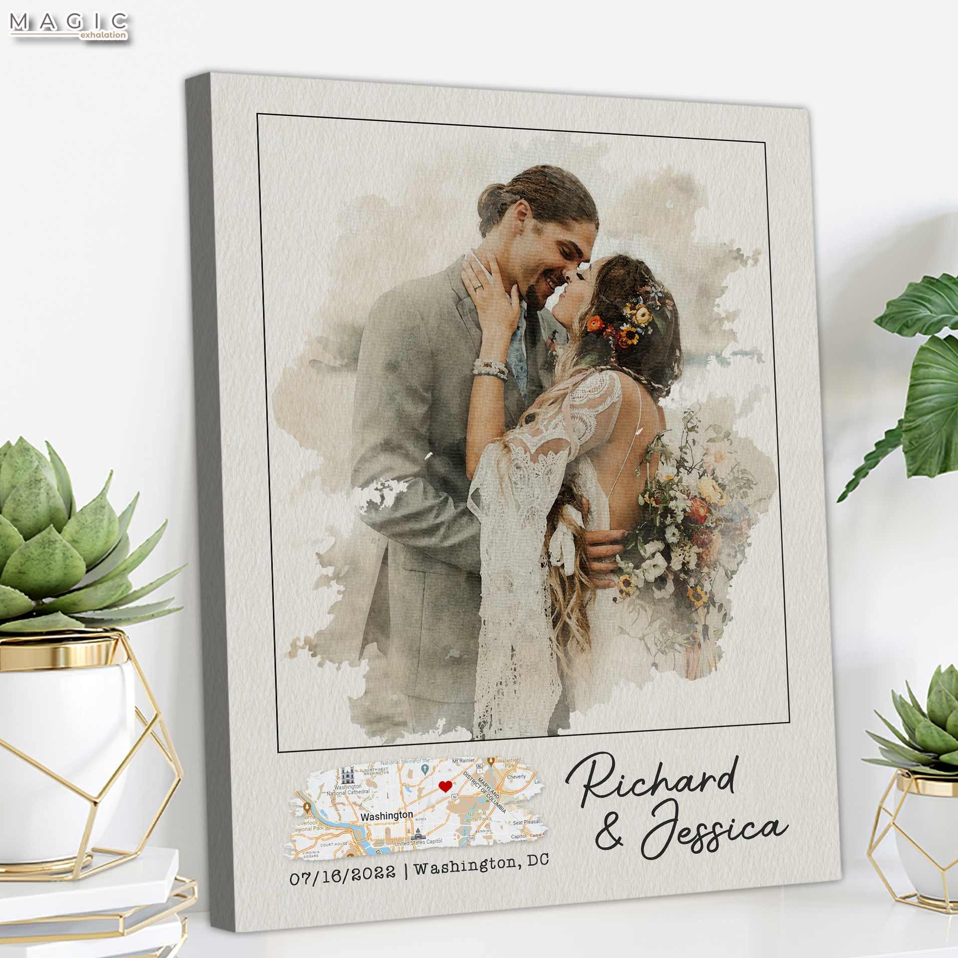 1 year anniversary gifts are what lovers choose to give on special first anniversary. This first wedding anniversary gift canvas is one of special anniversary gifts with custom portrait picture in watercolor, it is sure a one-of-a-kind gift for the other half!