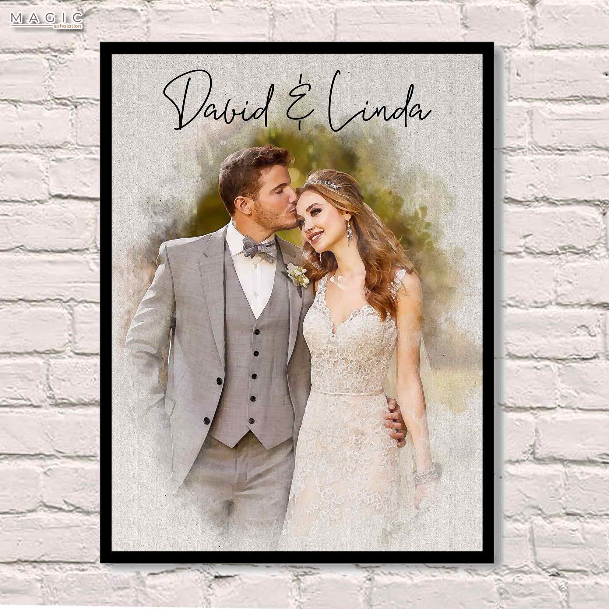 First Year Anniversary Gifts | Custom Watercolor Couples Portrait | Magic Exhalation