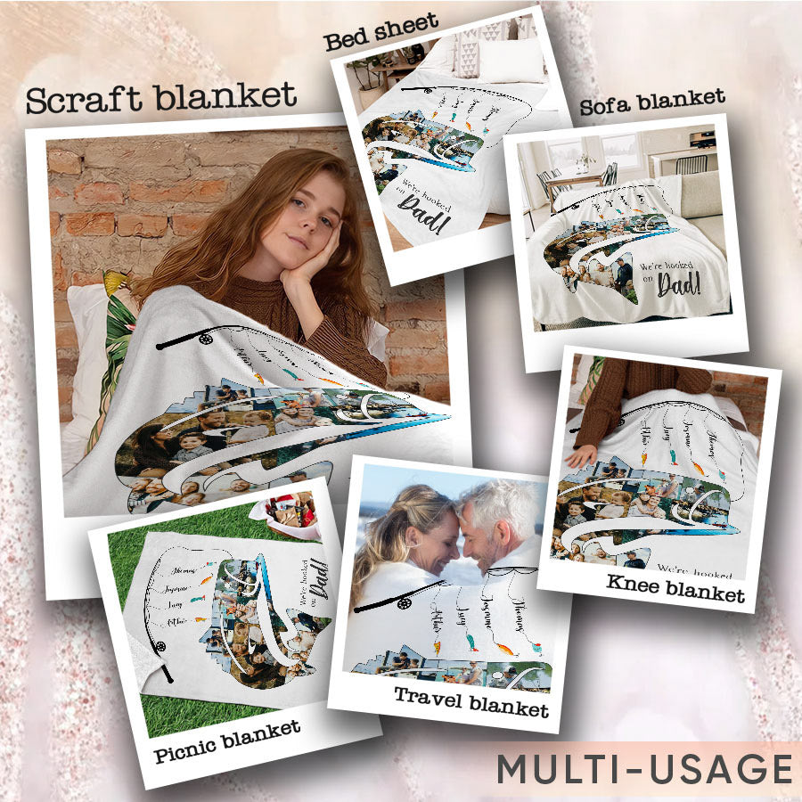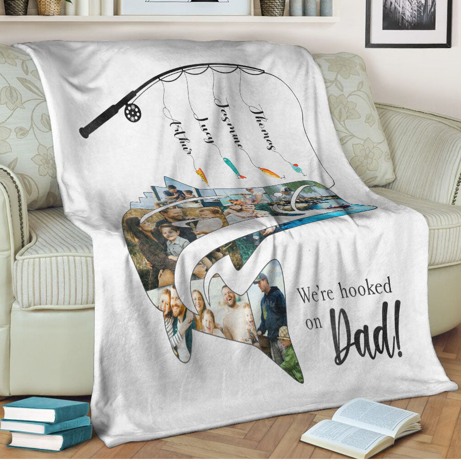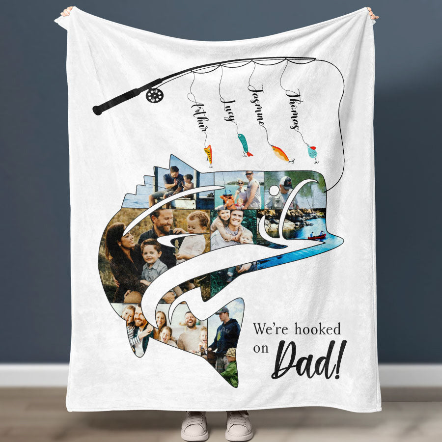 What better way to show your appreciation for Dad than a fishing gifts for dad | we’re hooked on dad that captures memories you've created together over the years? This high-quality blanket comes ready to be customized with photos that will bring a smile to his face each time he looks at it. From childhood pictures to recent family vacations, you can select images that remind him of how much he means to you and your family.