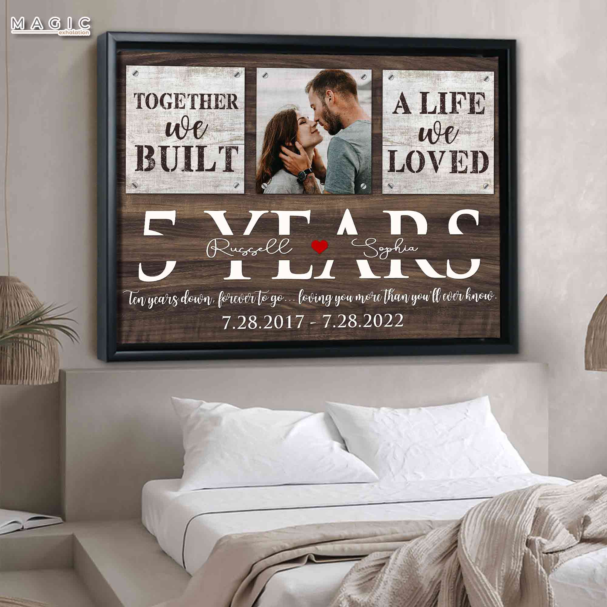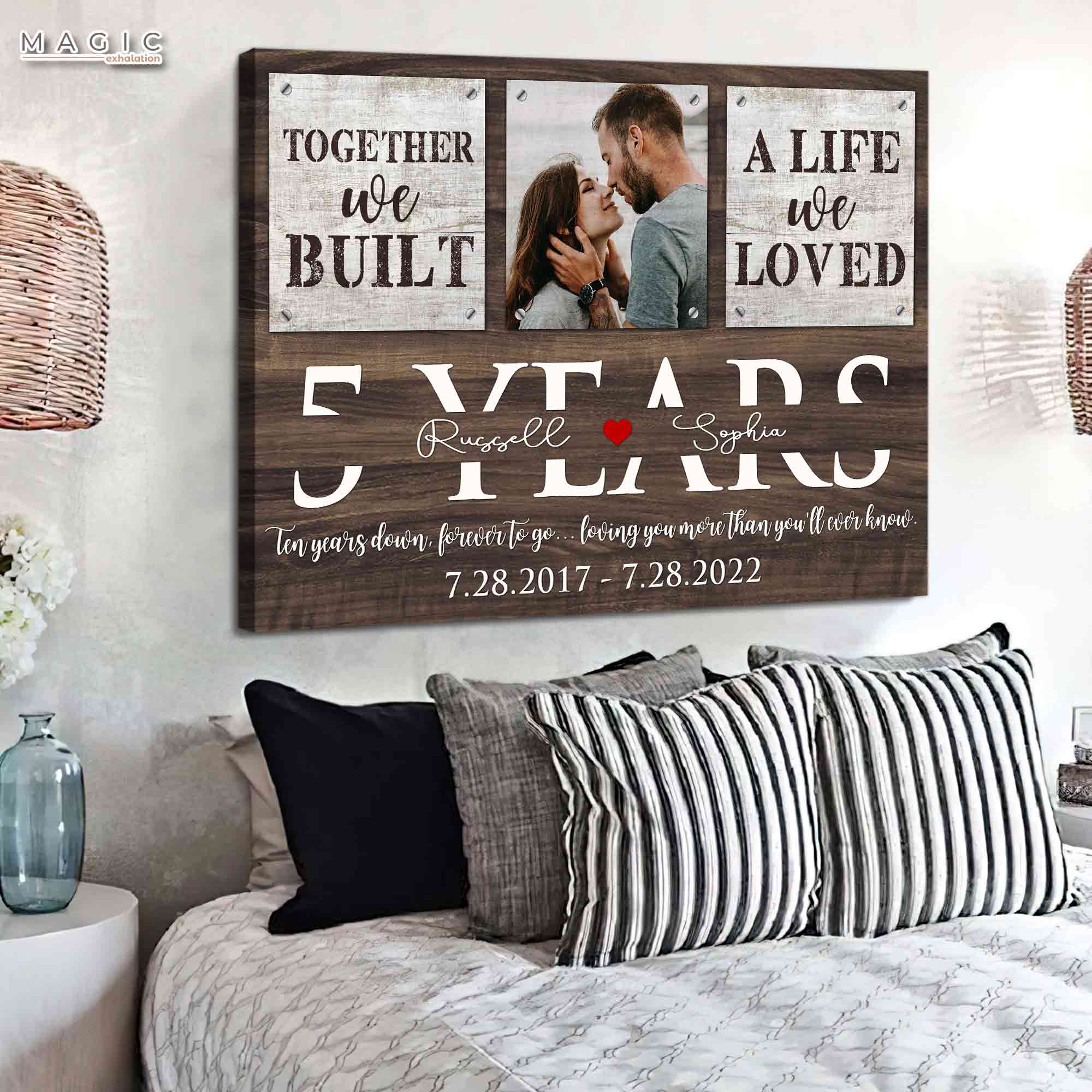 This unique and thoughtful five year anniversary gift we are giving you should be added to your list of ideas of 5 year anniversary gifts to send as well-wishes prayers. You can add your name and a specific date on the canvas or printing to make the anniversary gifts even more unique.