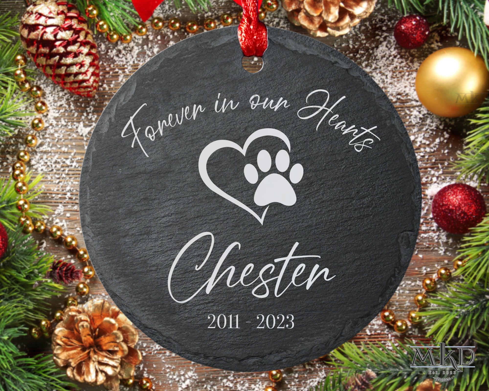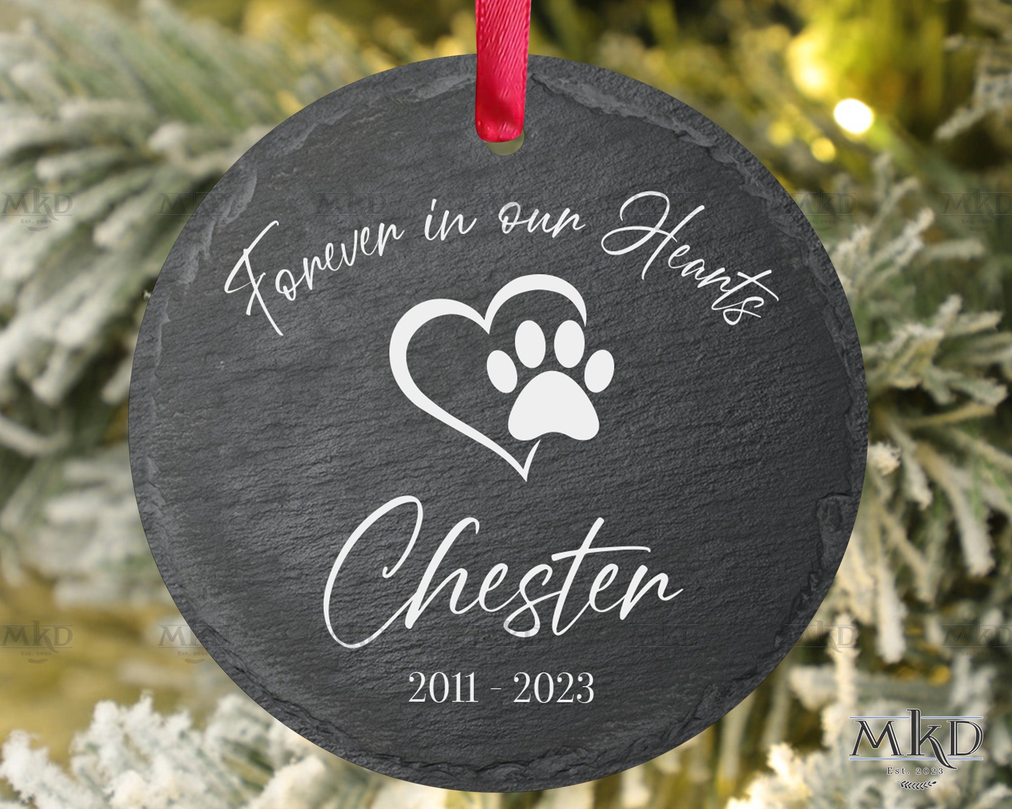 This delicate forever in our hearts dog ornament is the perfect way to honor your pet's memory while finding comfort and closure.