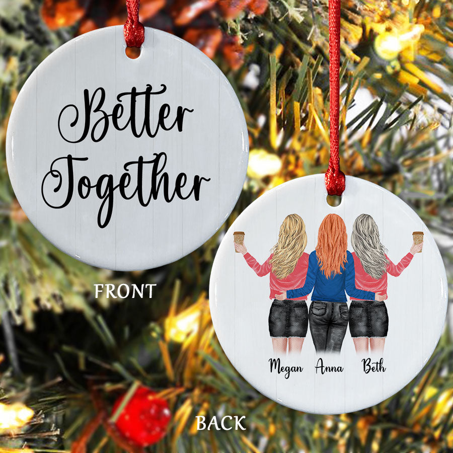 With friends ornament personalized, you can celebrate and remember your special friendships each Christmas. These personalized ornaments allow you to showcase inside jokes, inside memories, or simply your friends' names for all to see on your holiday tree. Bringing smiles to your face each time you spot their ornament hanging among the branches. This ornament is a perfect Best Friends Christmas Ornaments to show your best friend how much they mean to you. Give them this Personalized Christmas Ornaments will definitely brighten their whole holiday with so much love than ever.