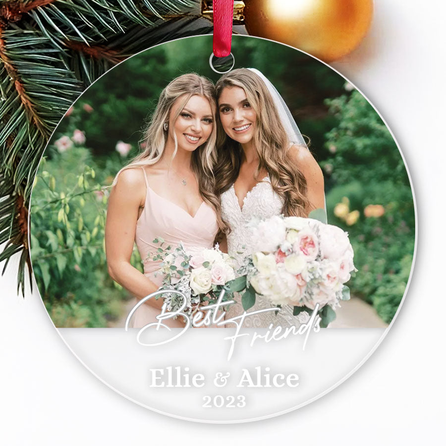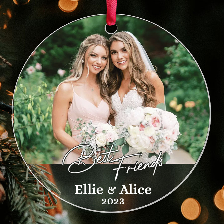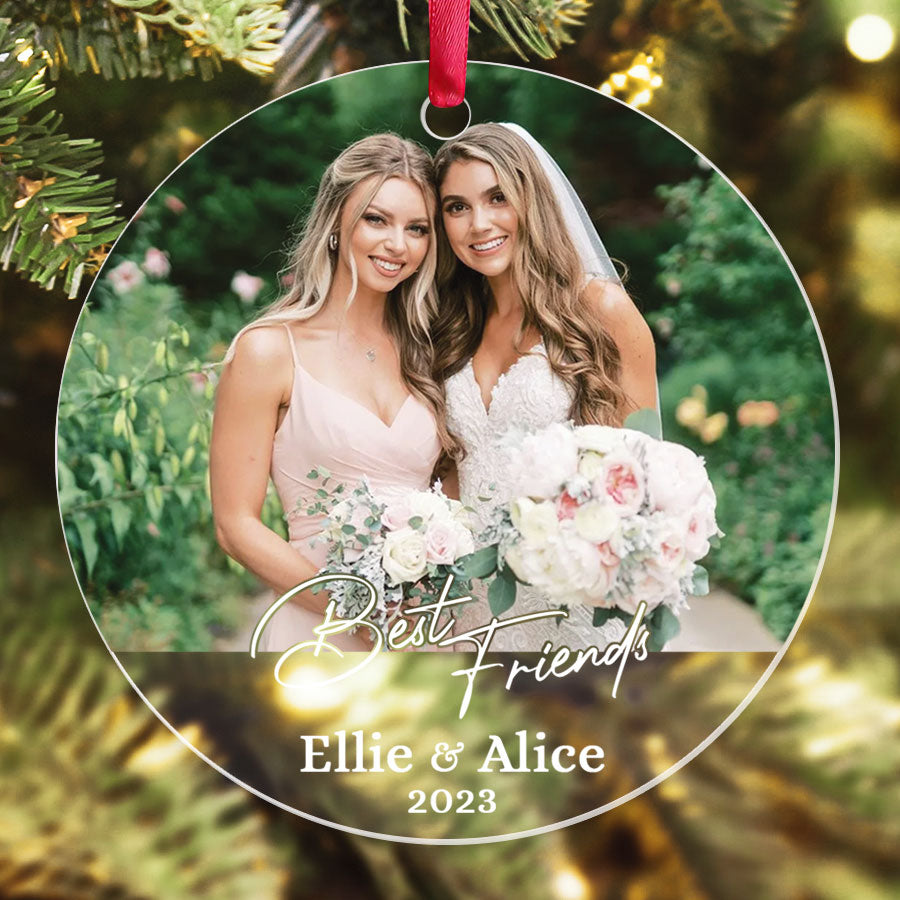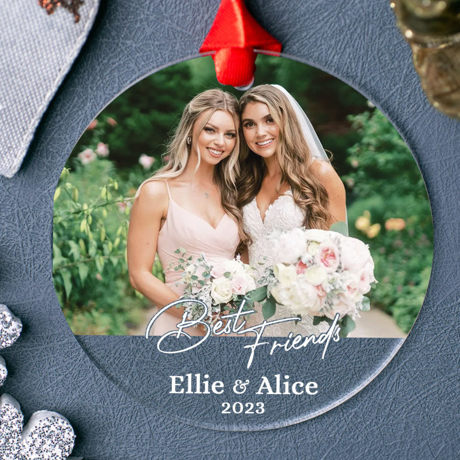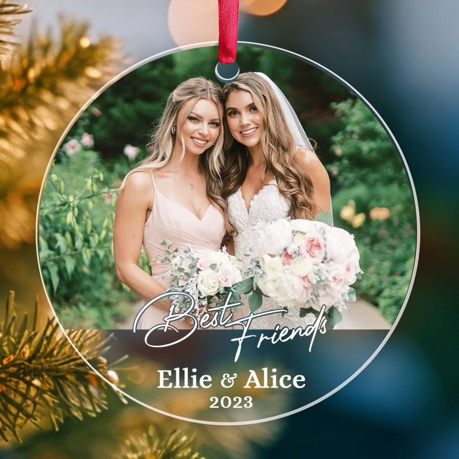 With friends photo ornament, you can celebrate and remember your special friendships each Christmas. These personalized ornaments allow you to showcase inside jokes, inside memories, or simply your friends' names for all to see on your holiday tree. Bringing smiles to your face each time you spot their ornament hanging among the branches. This ornament is a perfect Best Friends Christmas Ornaments to show your best friend how much they mean to you. Give them this Personalized Christmas Ornaments will definitely brighten their whole holiday with so much love than ever.
