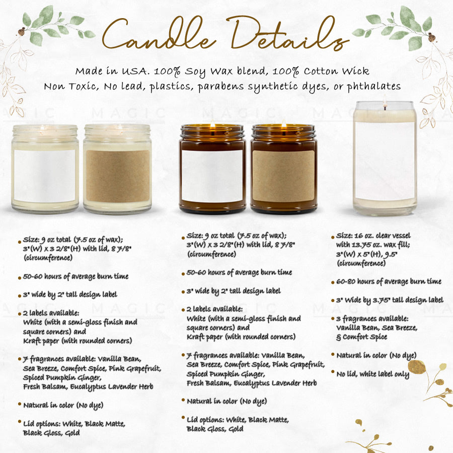 ♥️ Styles: The candle is available in a range of fragrances such as ♥️ Vanilla Bean, Sea Breeze, Comfort Spice, Pink Grapefruit, Spiced Pumpkin Ginger, Fresh Balsam, and Eucalyptus Lavender Herb.