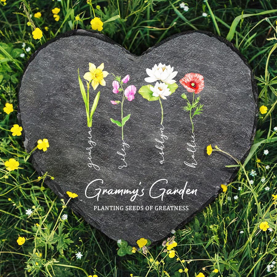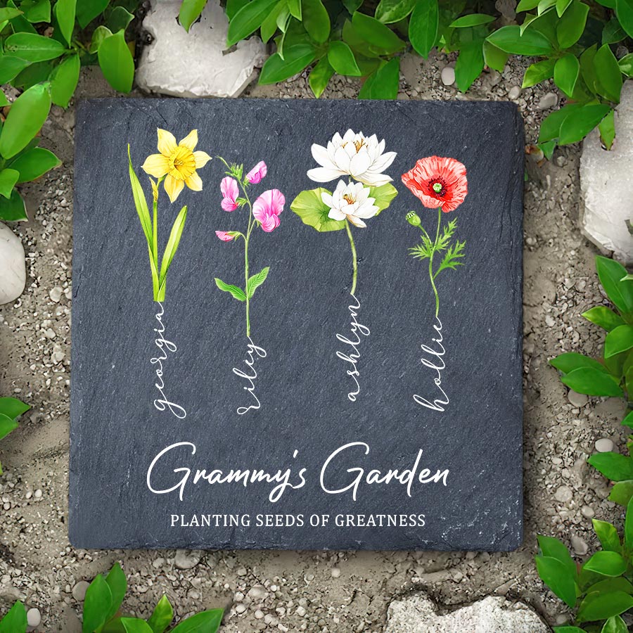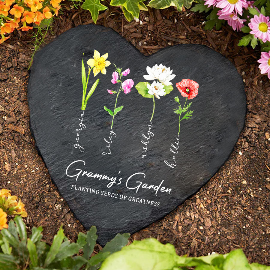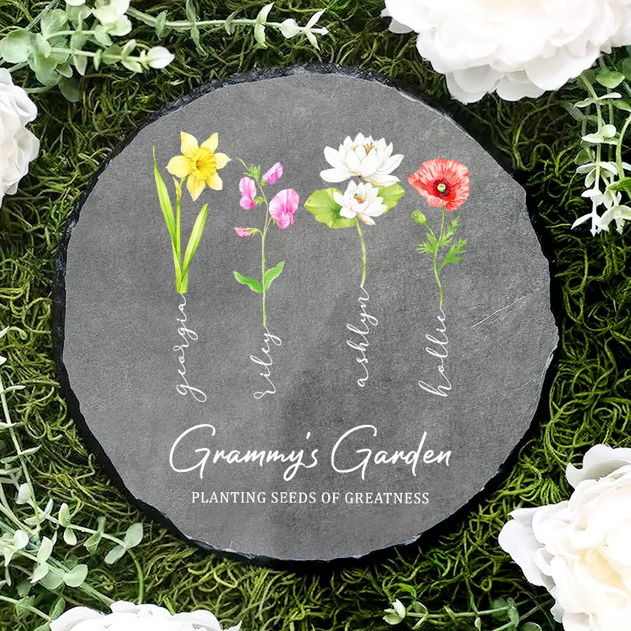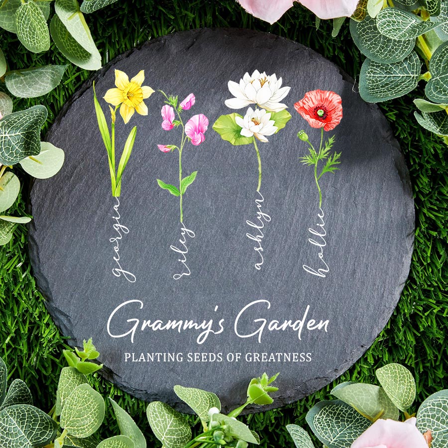 Give grandma unique garden gifts for grandma | personalised mothers day gifts for grandma to remember her grandchildren every time she visits her beloved garden. Our personalized garden stones can be customized for free with each child's birth month flowers. This extraordinary grandma garden gift is more than just a piece of art; it's a heartfelt tribute to the incredible woman who has made a lasting impact on your life.