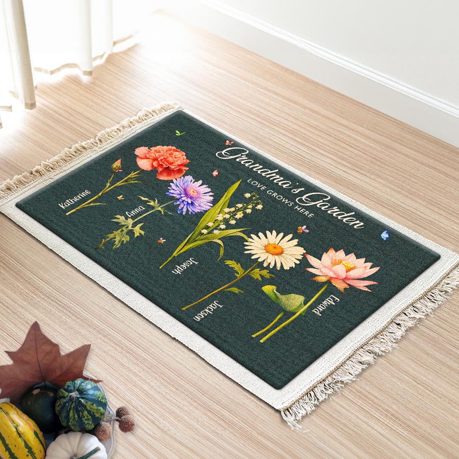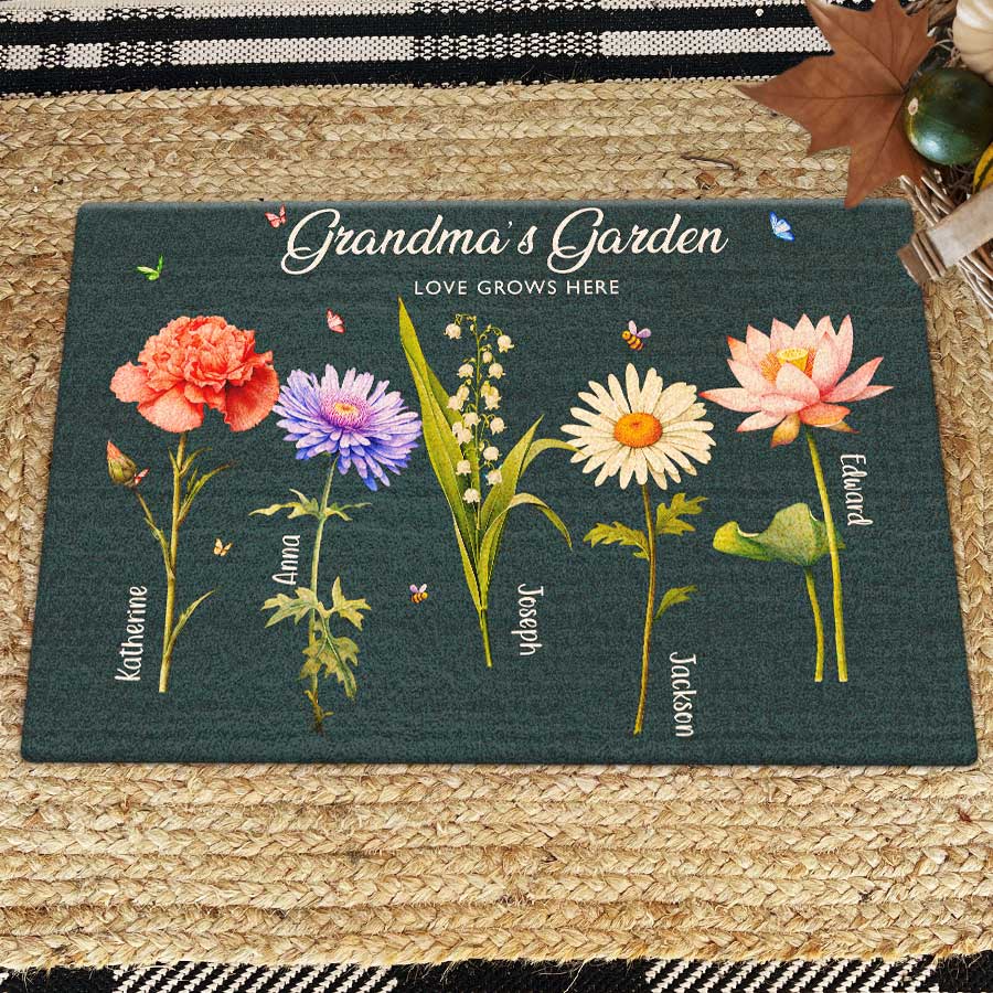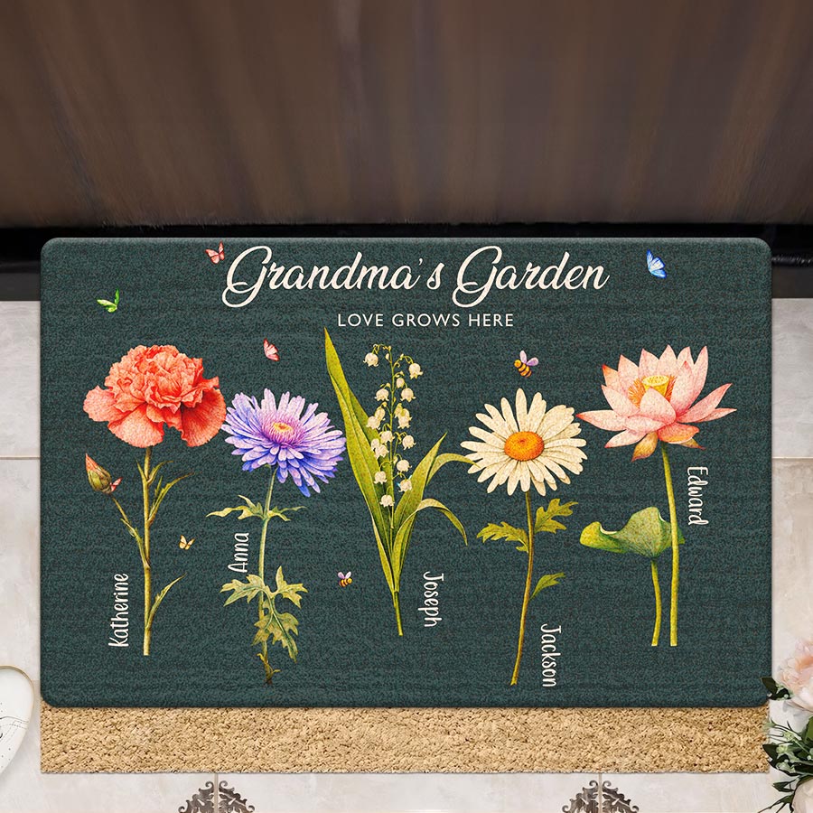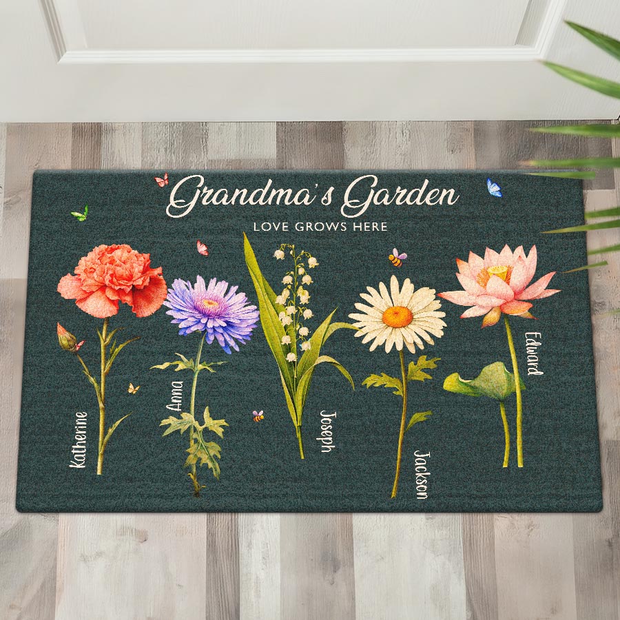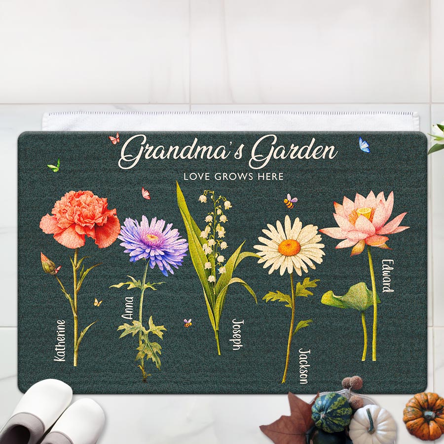 Giving thoughtful garden gifts for grandma | mother’s day personalized gifts for grandma is a way to let our elders know how much we value them. A personalized doormat for Grandma's garden shows that you were thinking of her safe place and the joy it brings. The customizable birth month flowers add a special, personal touch that will bring a smile to Grandma's face each time she sees it. Order yours today to create a smile in Grandma's garden!