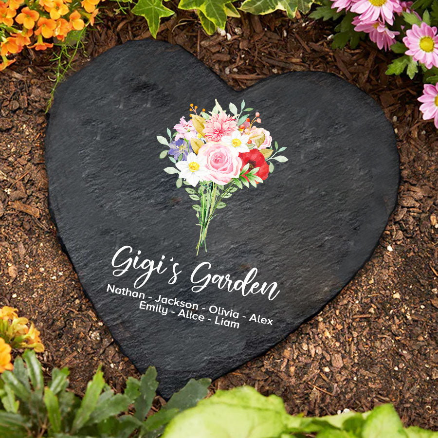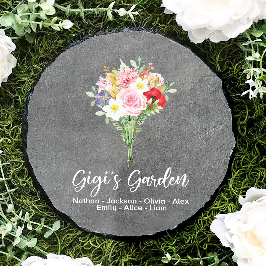 Order yours before the holidays to garden stone for grandma | birth flower garden for gigi with a thoughtful reminder of the grandchildren who add color and beauty to her life, just as her flowers do her garden. She is sure to treasure this special stone for years to come!
