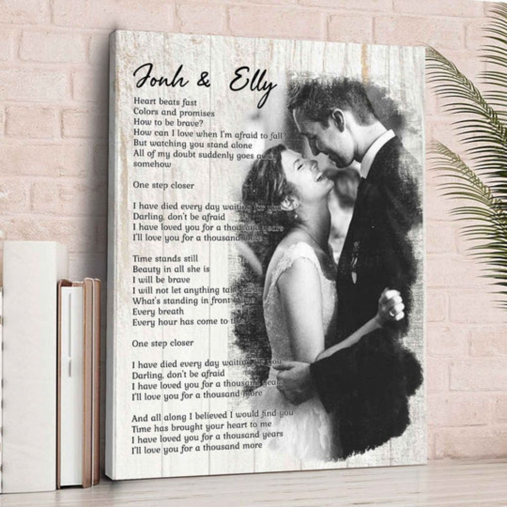 Celebrating your wedding day, the day when you two became each other's most meaningful person, there's nothing better than a canvas design depicting your best moments with the lyrics of "Thinking out loud" same meaning. The brightest smile, the happiest hug, let these beautiful memories be kept forever.