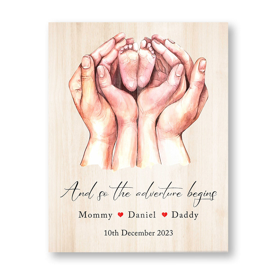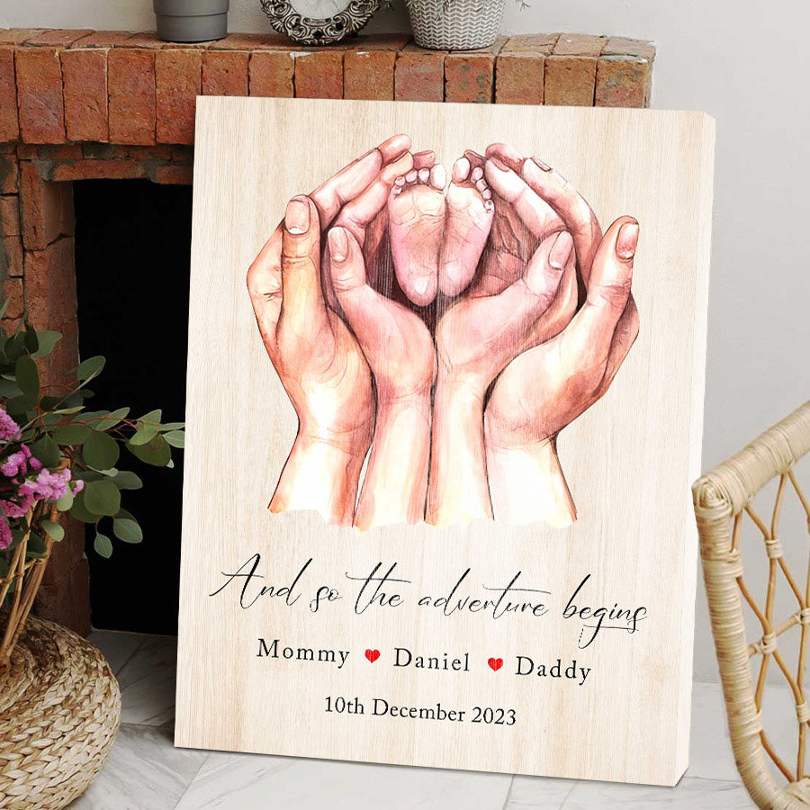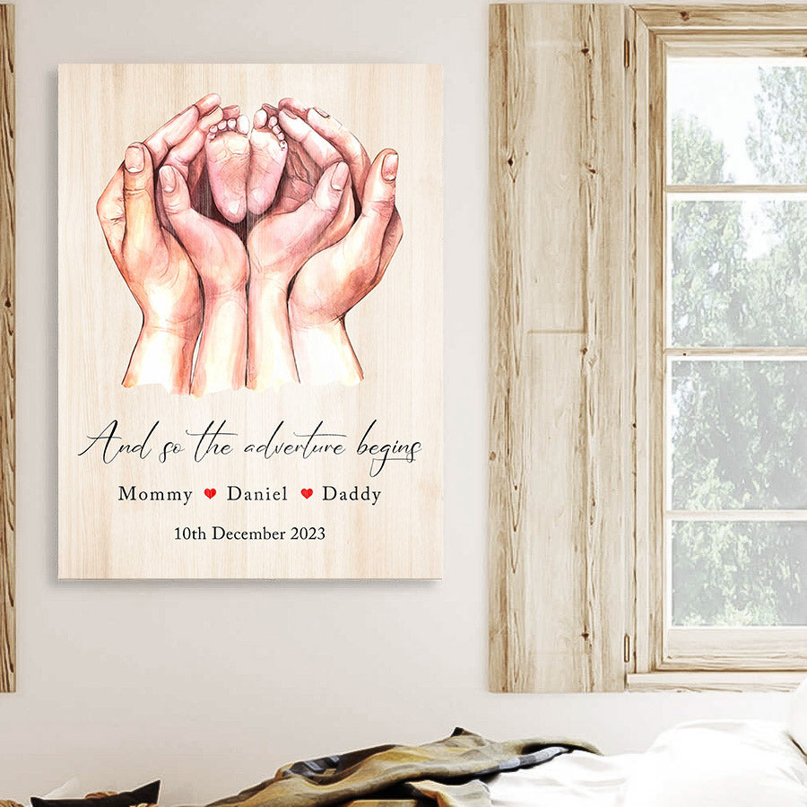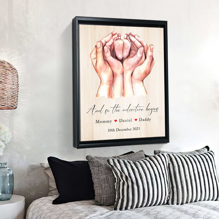 New Dad Gifts | Personalized Canvas Dad Hold My Hand | When Two Become Three
