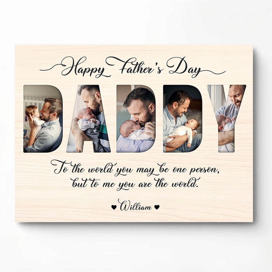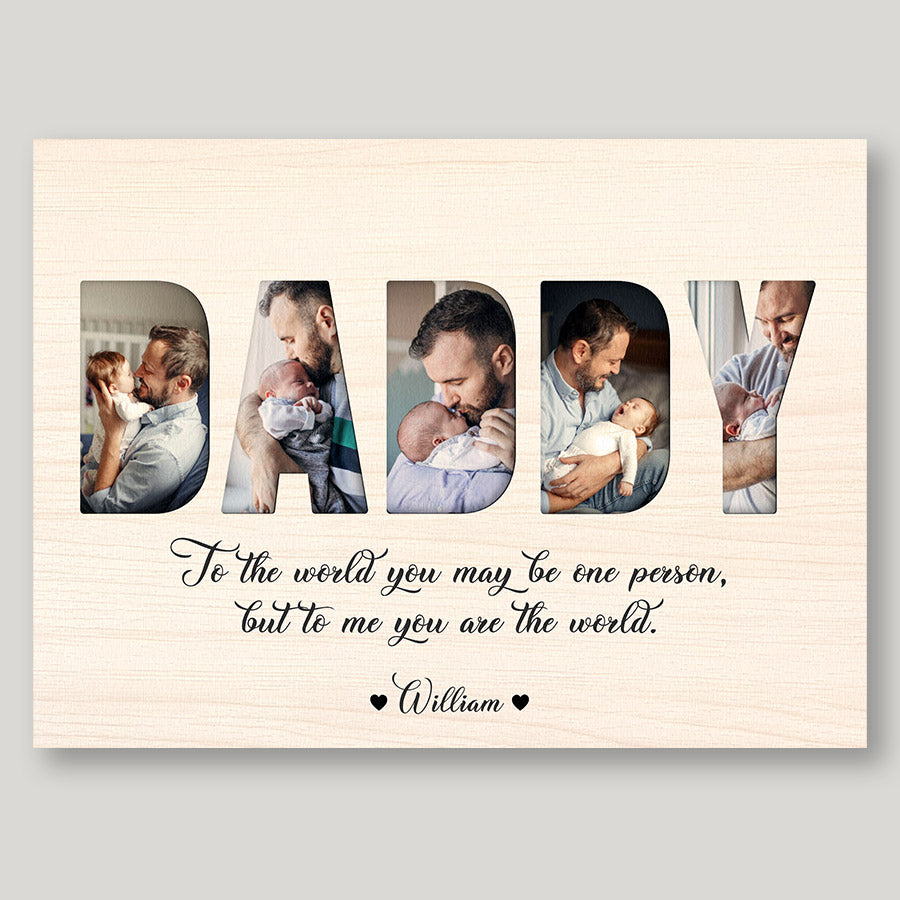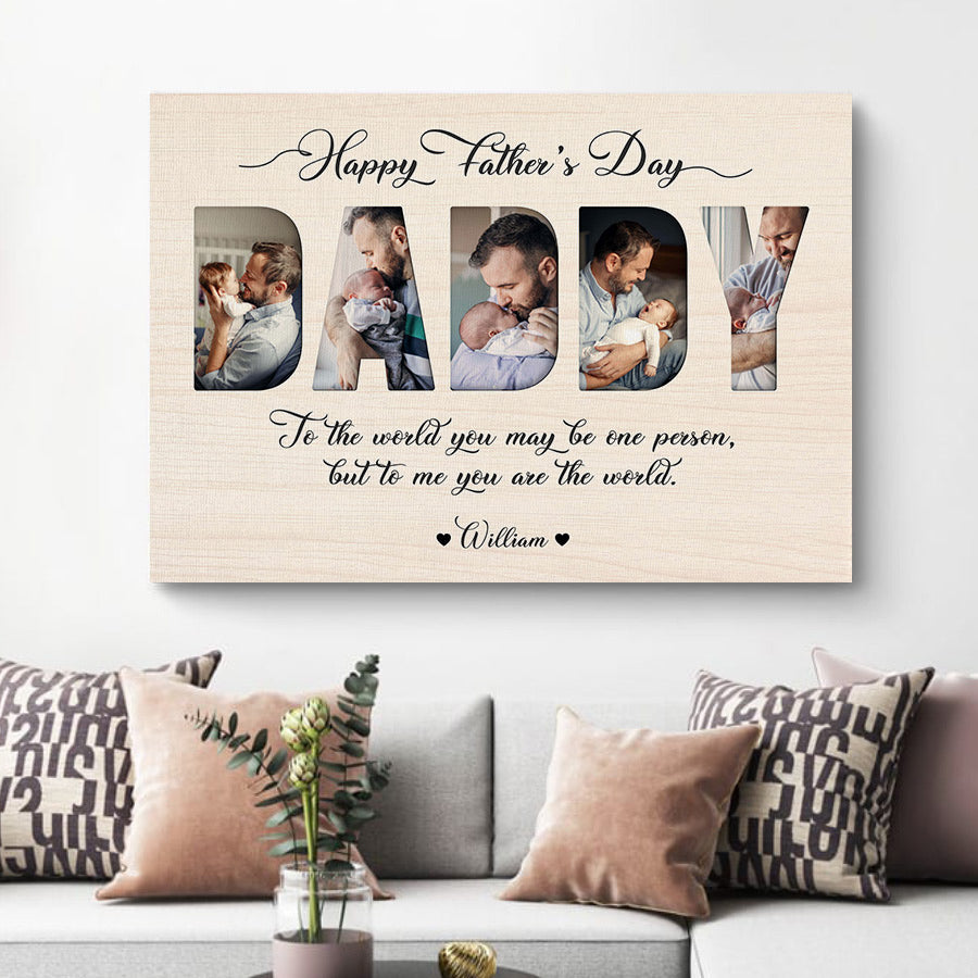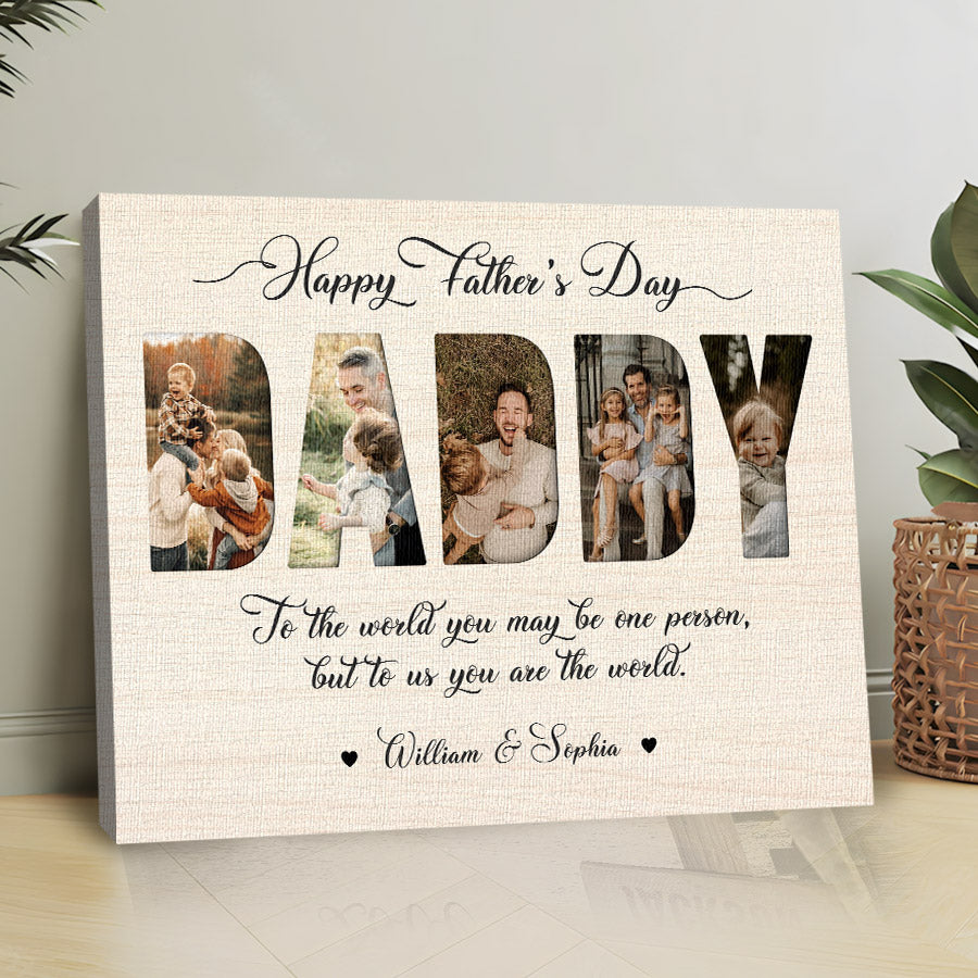 This DADDY design is the most trending this year, add your beautiful photos to DADDY to create a unique gift for him this Father's Day! Creating a Father's day canvas for the man who has given you so much can be challenging to find the perfect gesture. A gift for dad from his cherished memories or inside jokes you share is a meaningful gift that lets Dad know how much you care.