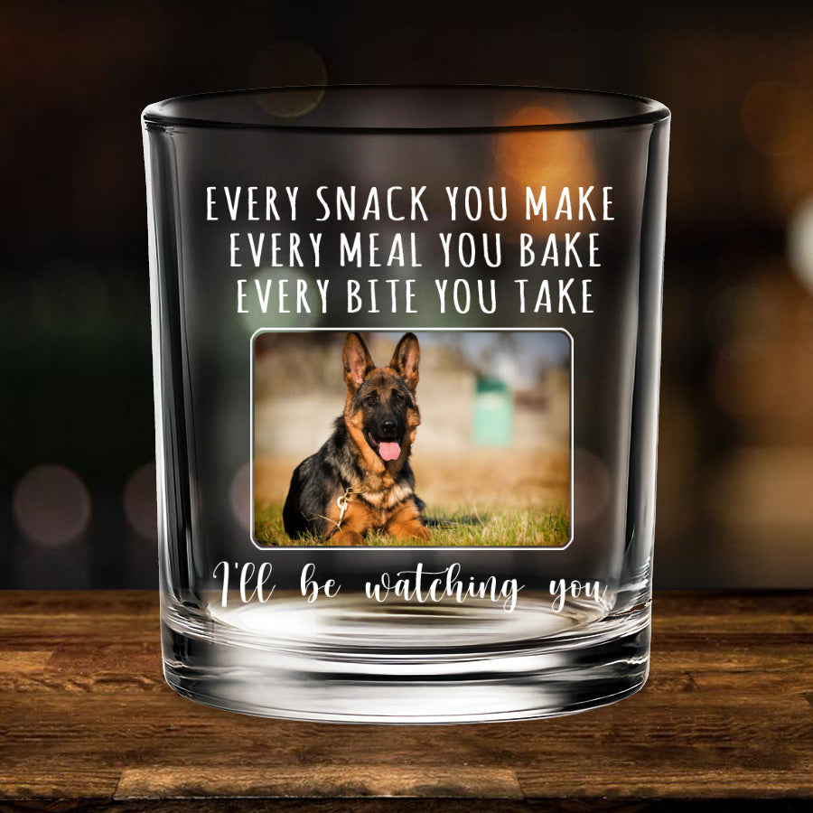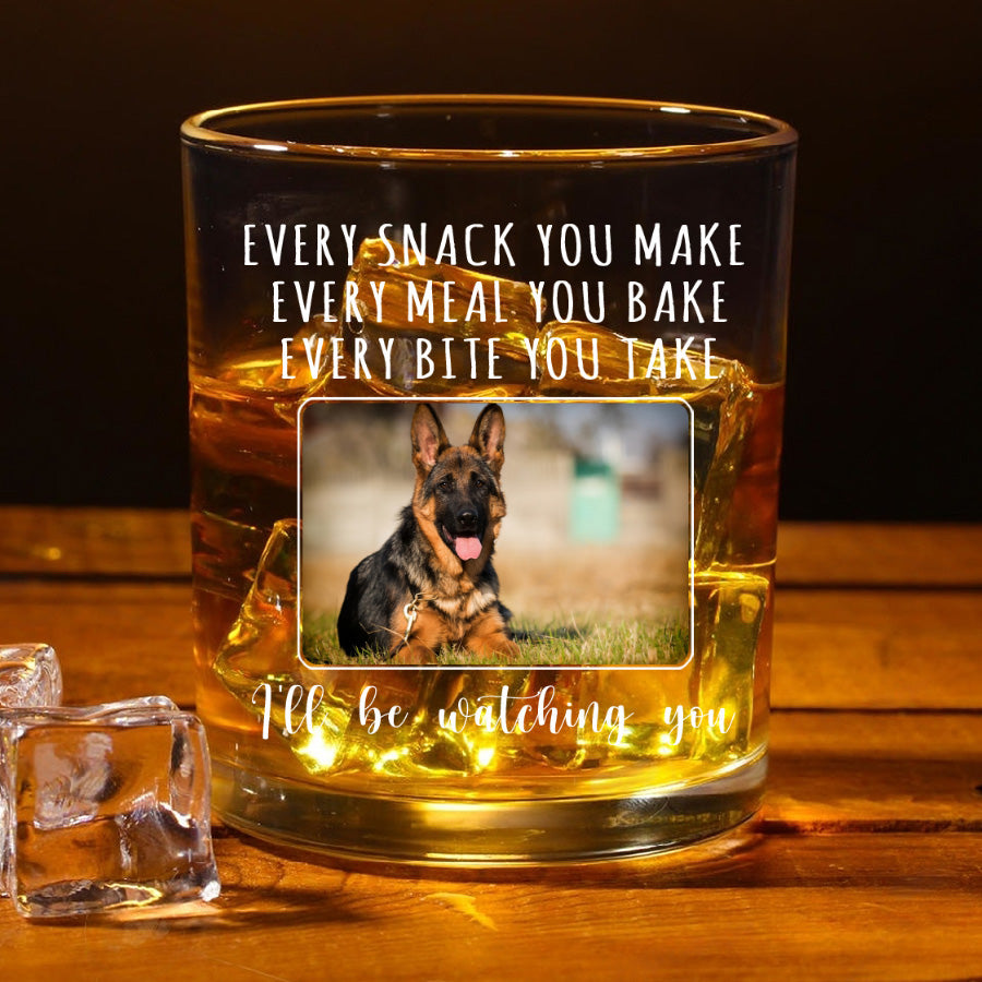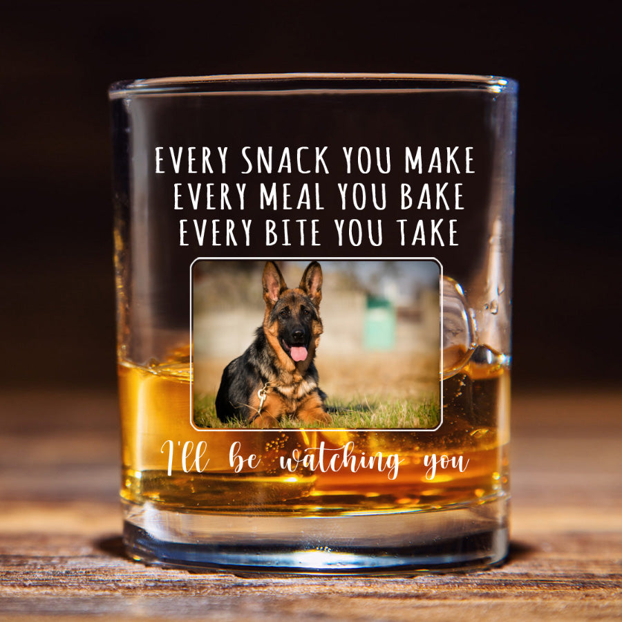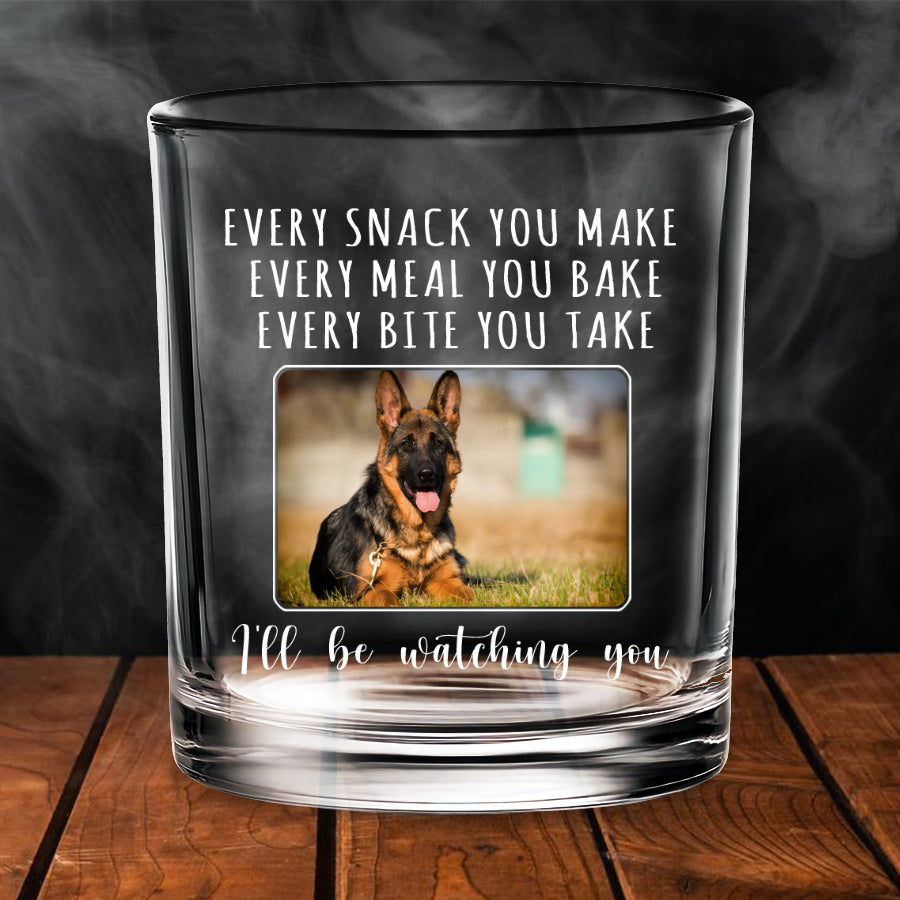 Fathers will smile when they see their face looking back at them from this one-of-a kind whiskey glass, surrounded by paw prints and images of their loyal dog companions.