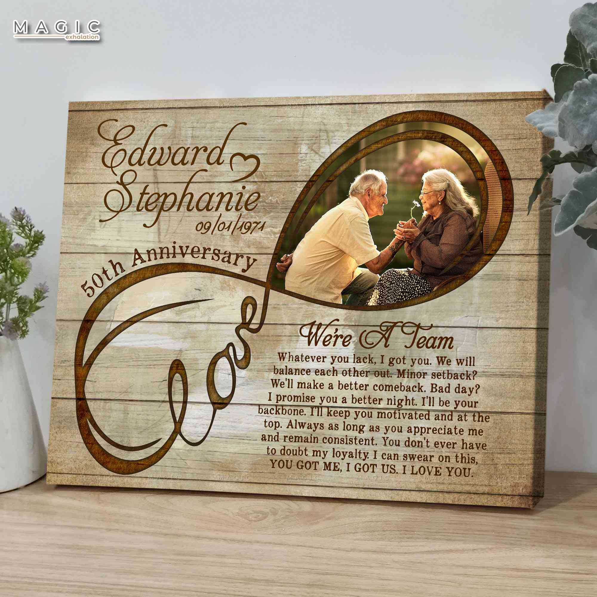 You may be in love with this art design of canvas print, or could also take a look at this item to have more 50th anniversary options to choose: Gifts for 50th Wedding Anniversary, Personalized 50th Wedding Anniversary Gifts, Infinitive Love Design to Treasure 50th Anniversary
