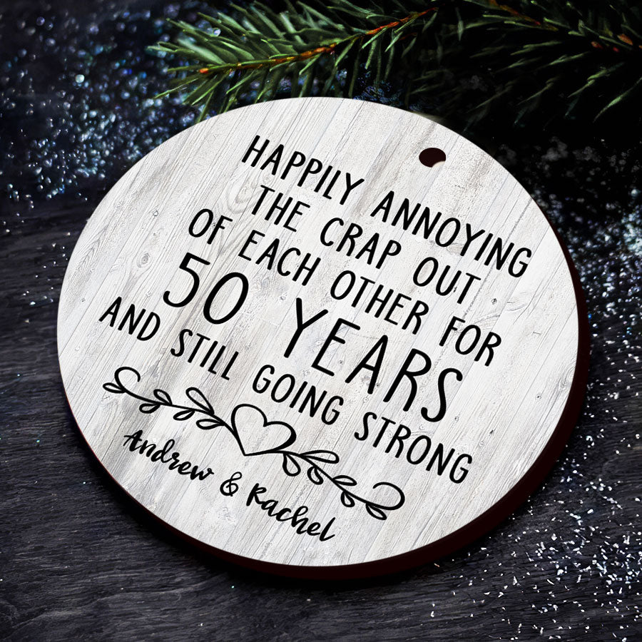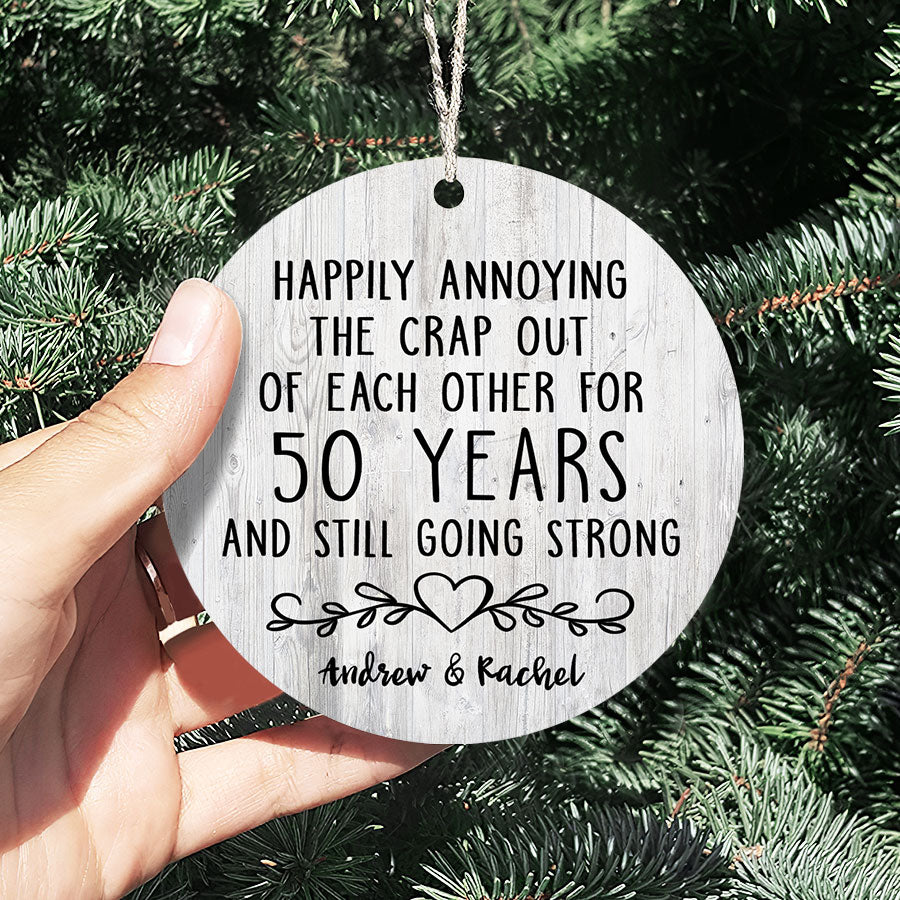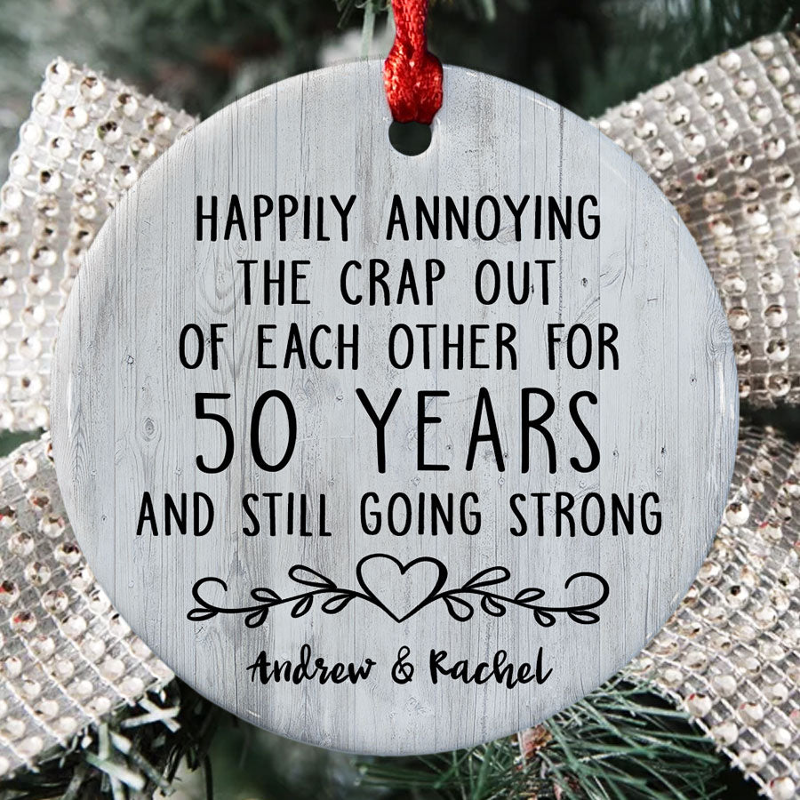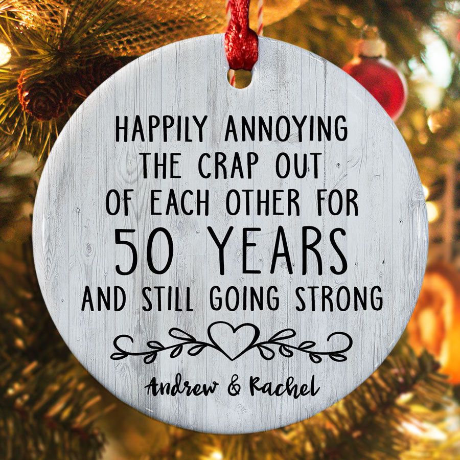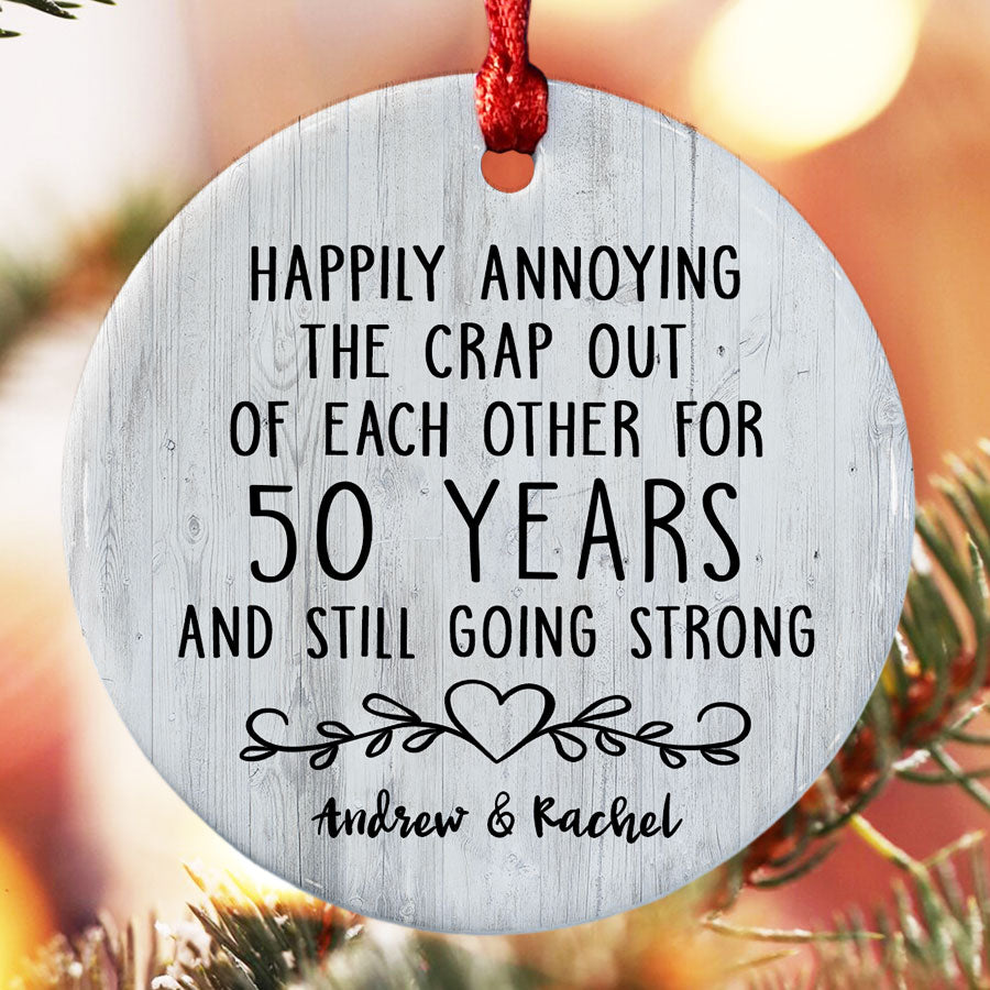 As you look back on 5 decades together, filled with memories and love, this gifts 50th anniversary | 50th anniversary ornaments will be a symbol of those memories and the joy you feel today. For 50 years, you've shared life's highest highs and lowest lows. You've raised children, built a home, and supported each other through hard times and good.