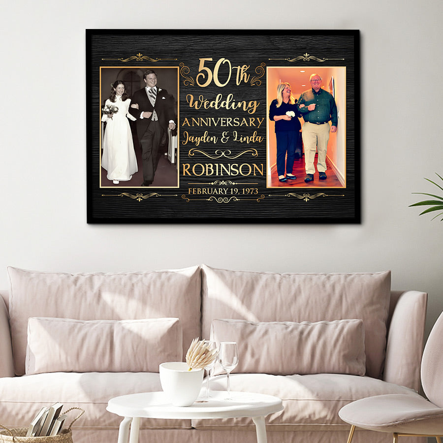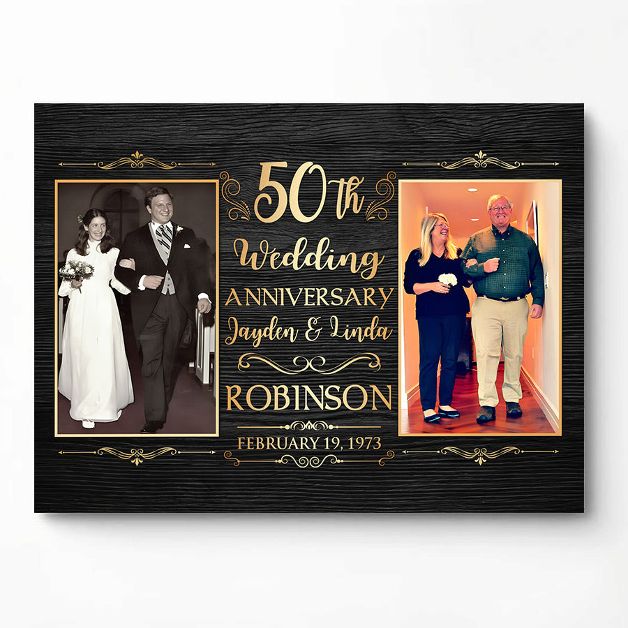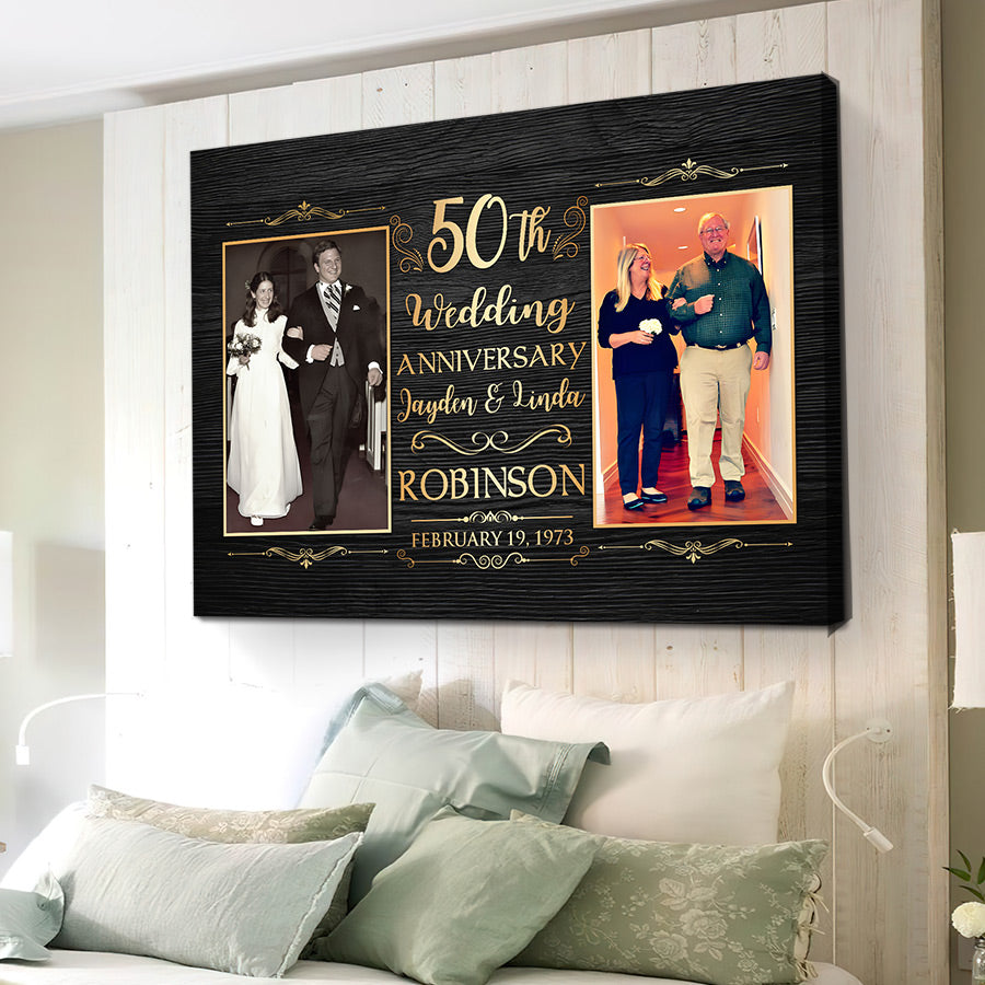 You may be in love with this art design of canvas print, or could also take a look at this item to have more 50th anniversary options to choose: 50th Wedding Anniversary Gift Ideas For Him Her, Custom Photo Unique 50th Wedding Anniversary Gifts for Parents, Golden Anniversary Canvas