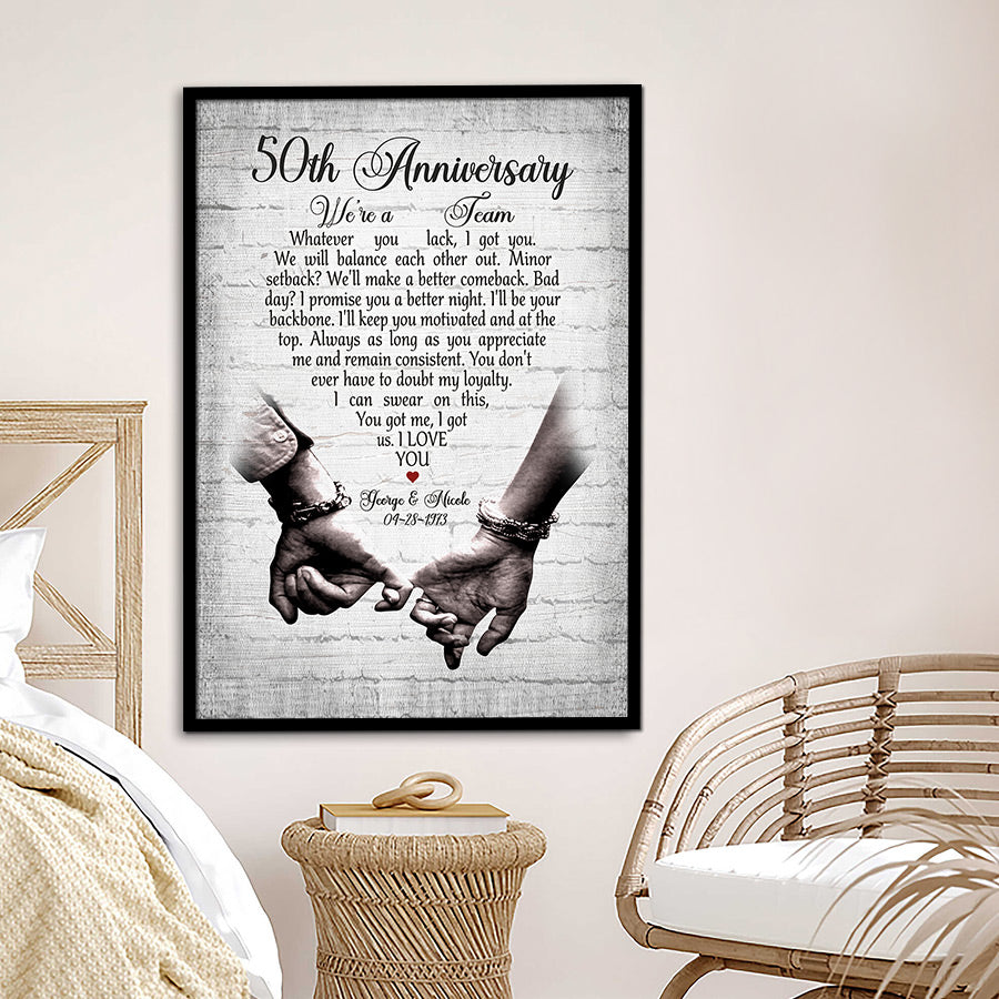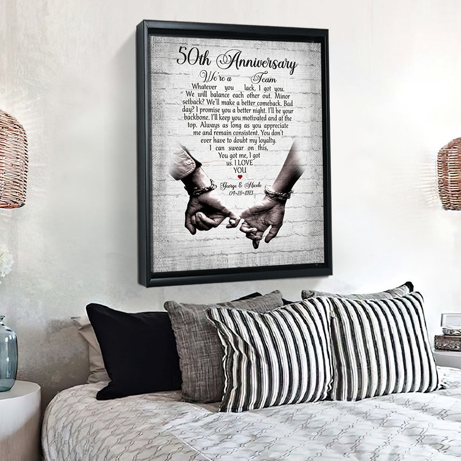 You may be in love with this art design of canvas print, or could also take a look at this item to have more 50th anniversary options to choose: 50th Anniversary Gift Ideas with We're A Team on the Canvas, Personalized 50th Wedding Anniversary Gifts, 50th Anniversary Gift for Parents
