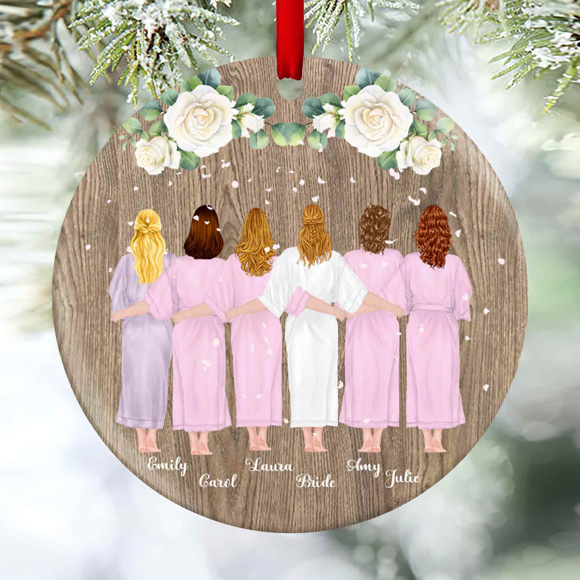 It can be personalized with the names, making it a special and unique gifts for them. The gifts for bridesmaids are made of durable materials like MDF and ceramic and is designed to last. It also comes with a cord, making it easy to display on the Christmas tree in the park or garden. The design is simple yet elegant, and the ornament is sure to be cherished by the recipient for years to come.