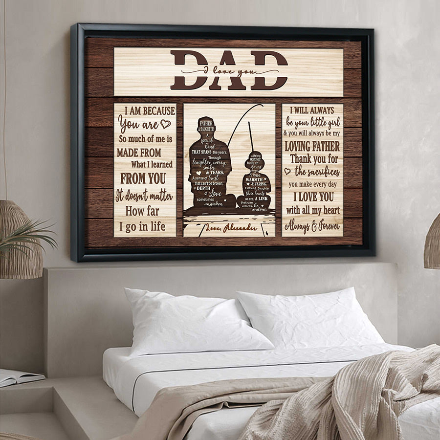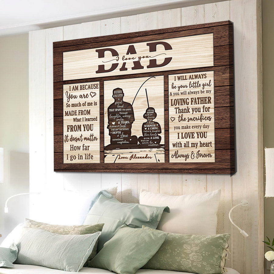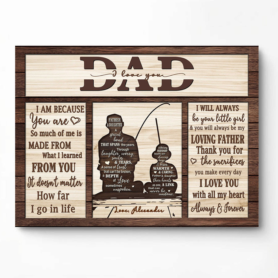 The crisp resolution of this gifts for dad fishing | to my dad father daughter fishing together allows you to select photos with fine details that will be preserved for years to come. But more than just pictures, this gift conveys the deep love, gratitude and respect you feel for everything Dad has done for you. On Father's Day, a day set aside to honor fatherhood and all the hard work dads do every day, this personalized canvas is a thoughtful way to let him know how much you value him and celebrate all he has provided throughout the years.