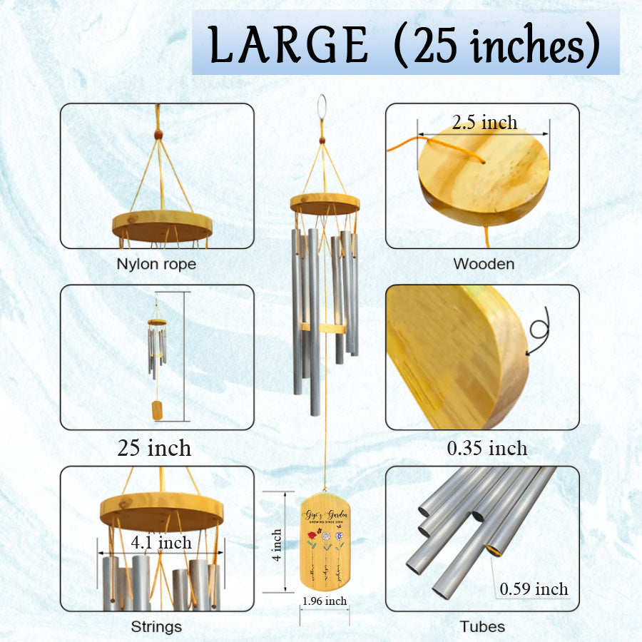 Treat the special grandmother in your life to gigi garden | personalized mothers day gifts for grandma with lasting meaning. Purchase this memorable windchime today and create memories that will echo in her heart for seasons to come.