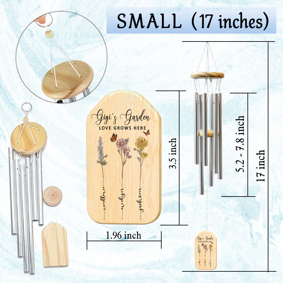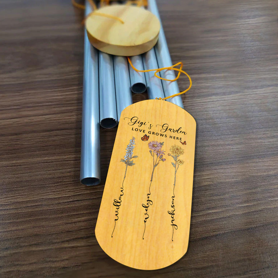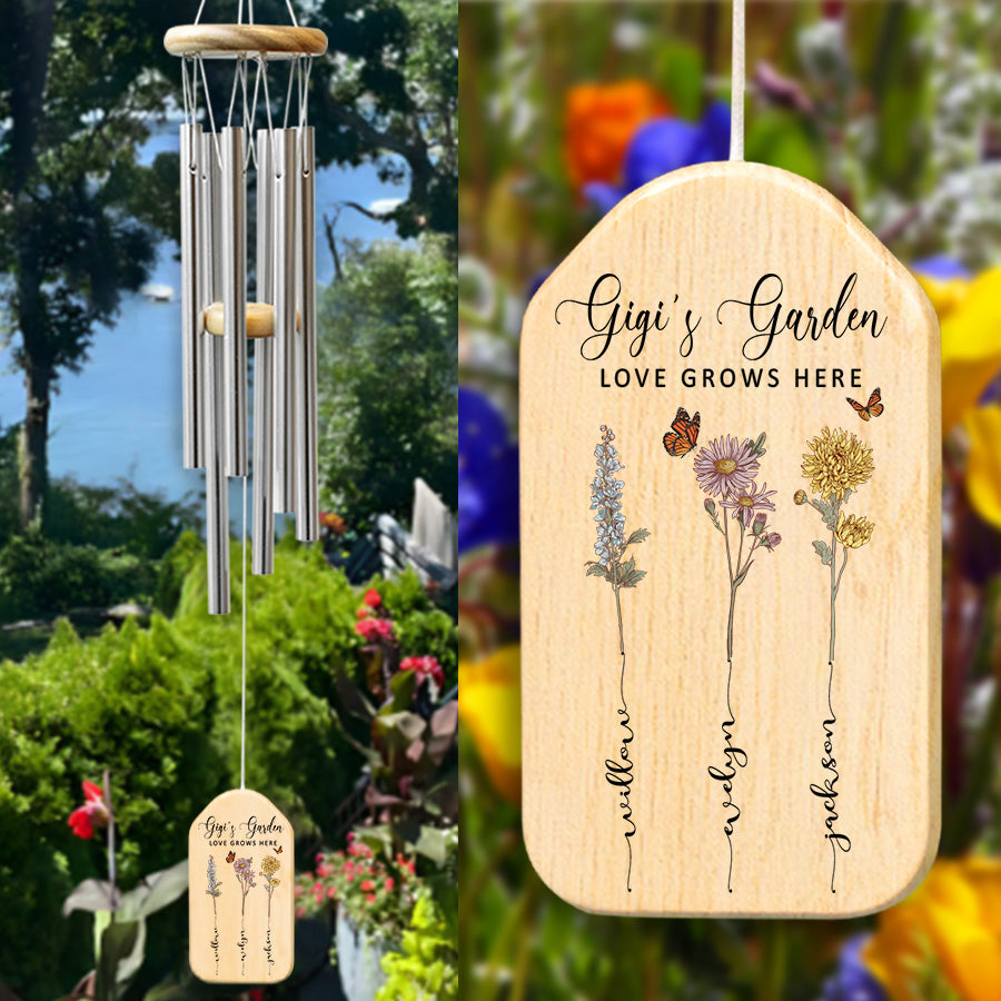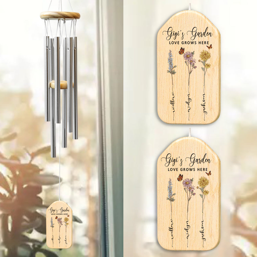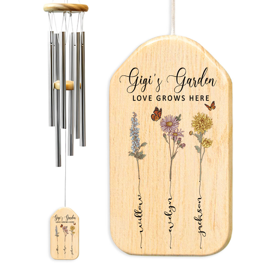 Treat the special grandmother in your life to gigi garden | personalized mothers day gifts for grandma | grandma's garden gifts with lasting meaning. Purchase this memorable windchime today and create memories that will echo in her heart for seasons to come.