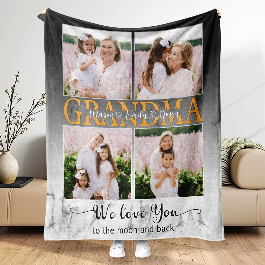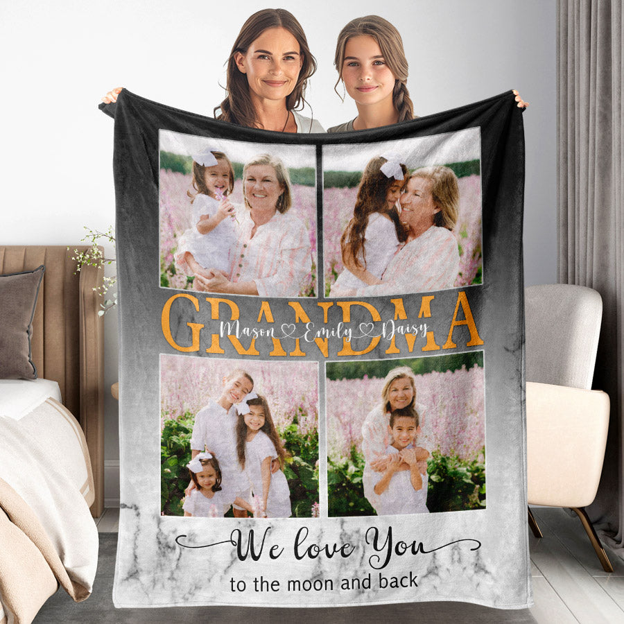 Wrap your grandma in love and warmth with our grandma blanket | custom blanket for grandma with grandkids names. This isn't just any ordinary gift – these are heartfelt personalized gifts for grandma that will make her feel cherished and appreciated.