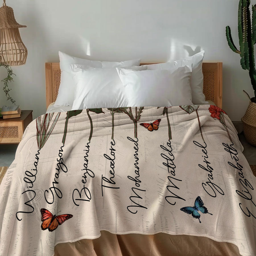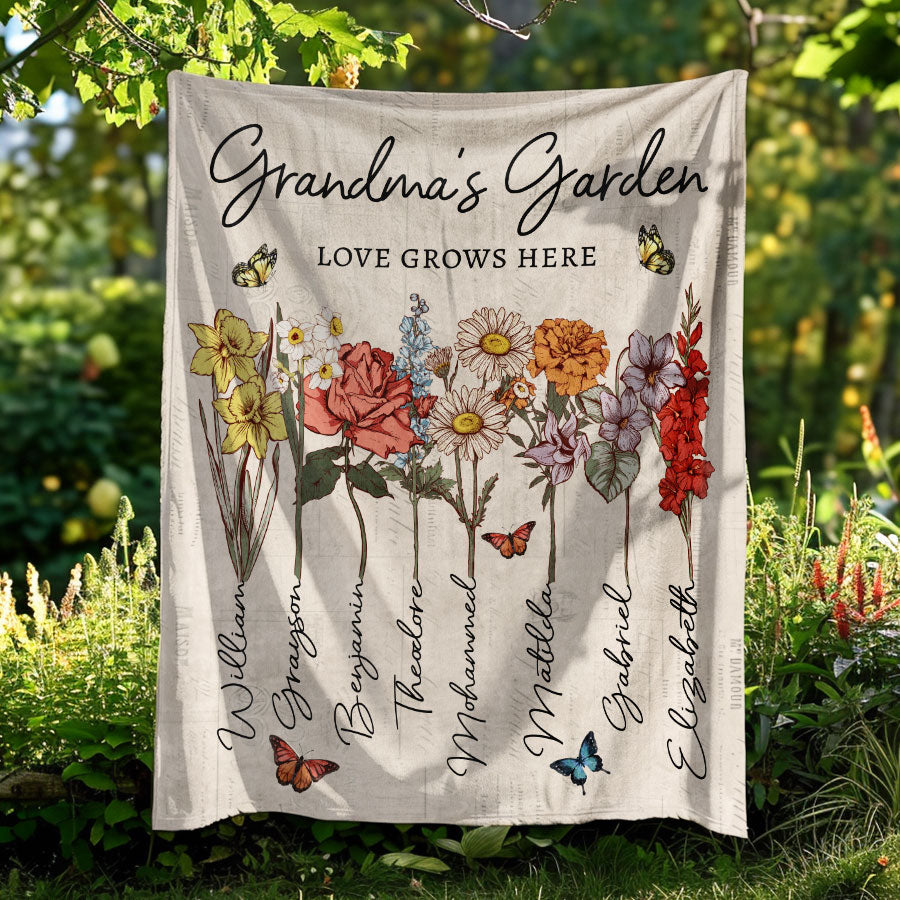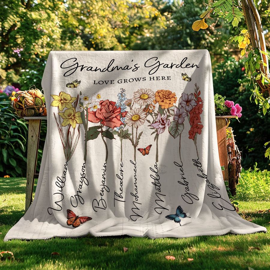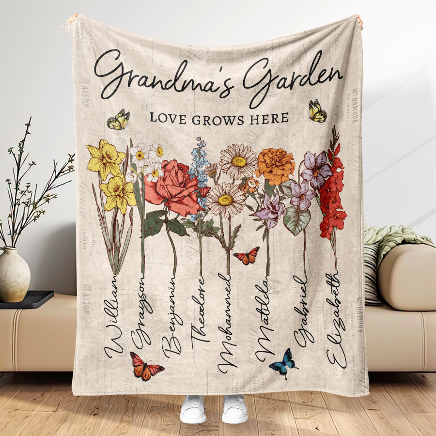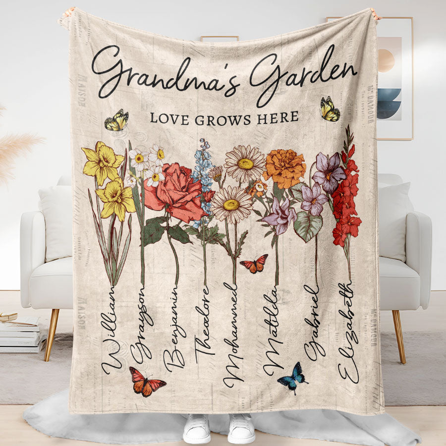 Shop now and create grandma blanket | custom birth flower blanket that will bring a smile to her face and warmth to her heart. Give her a gift she'll treasure for years to come. Order your gift today and let your grandma know she holds a special place in your heart.