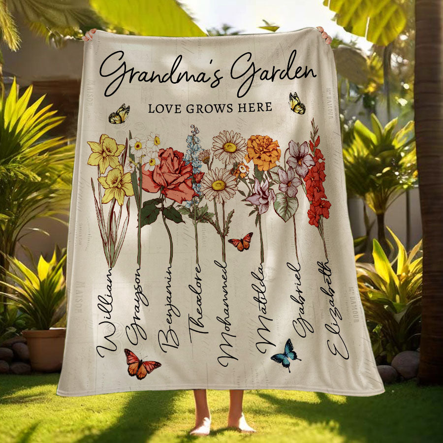 Mother's Day is the perfect occasion to honor the incredible woman who has played such a significant role in your life. Our grandma blanket | custom birth flower blanket are a meaningful way to show her just how much she means to you. As she wraps herself in its soft embrace, she'll be reminded of the countless memories and special moments you've shared together.