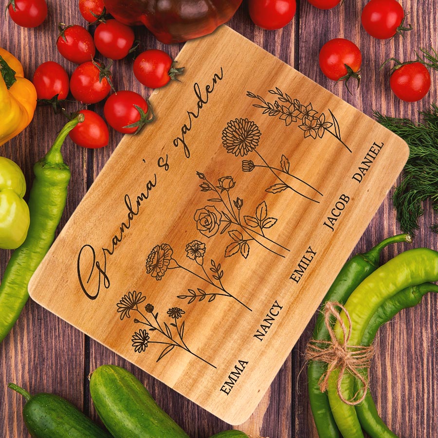 Celebrate grandma's love this Mother's Day with our custom engraved hardwood cutting board - grandma cutting board | custom grandma’s garden gifts that keep on giving with functionality, beauty and memories for years to come. Personalize it FREE now for a treasure she will always cherish.