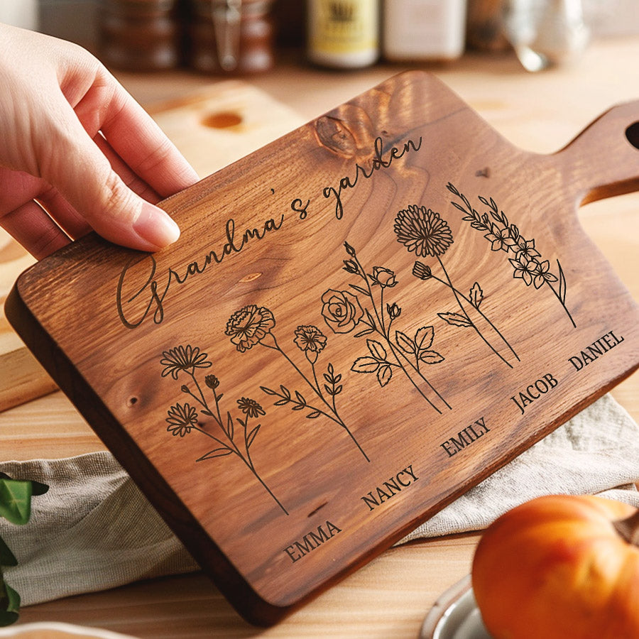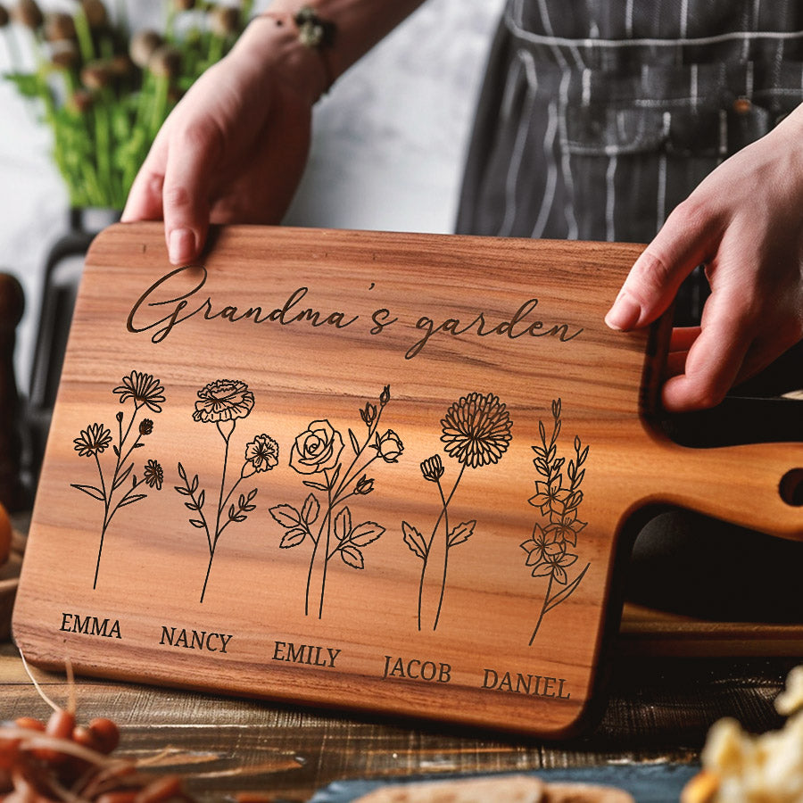 There's no better way to show your grandma just how much you appreciate her this Mother's Day than with grandma cutting board | custom grandma’s garden gifts that comes straight from the heart. Artisans lovingly handcraft our engraved cutting boards to celebrate all that mothers do. This isn't just any ordinary gift – these are heartfelt personalized gifts for grandma that will make her feel cherished and appreciated.