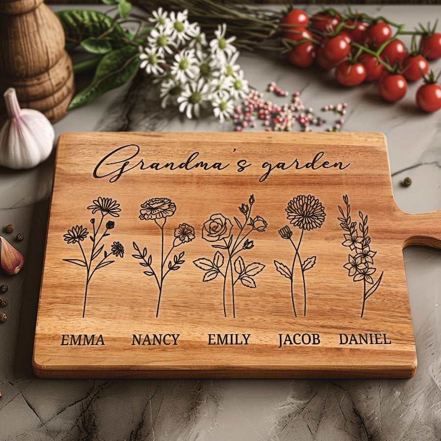 Grandma’S Kitchen Cutting Board | Custom Mother’S Day Gifts For Grandma | Grandma'S Garden Birth Flowers Gifts | Customized Grandma Gifts