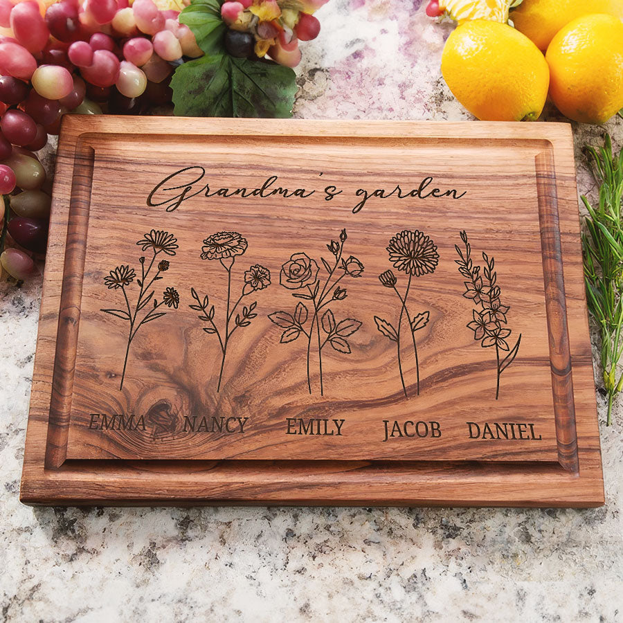 This outstanding hardwood cutting board makes the perfect grandma cutting board | custom grandma’s garden gifts to commemorate her special day and all the memories she's helped make throughout the year.