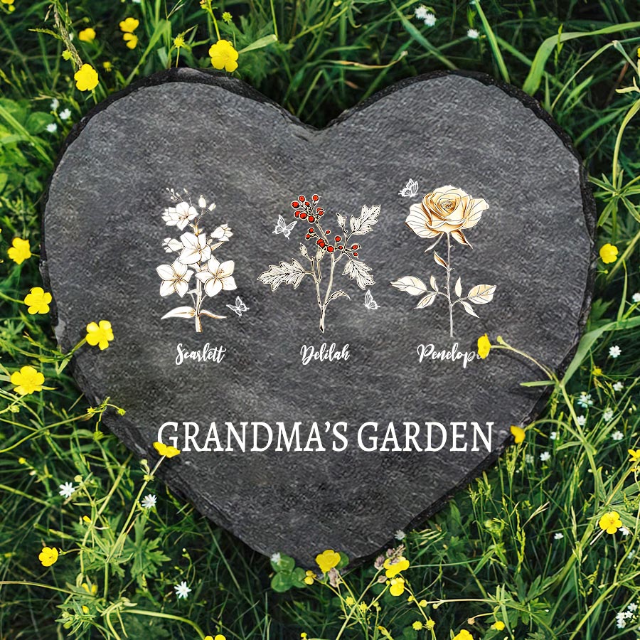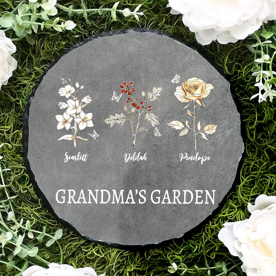 Give grandma unique grandma garden gifts | personalized mother’s day garden gifts to remember her grandchildren every time she visits her beloved garden. Our personalized garden stones can be customized for free with each child's birth month flowers. This extraordinary grandma garden gift is more than just a piece of art; it's a heartfelt tribute to the incredible woman who has made a lasting impact on your life.