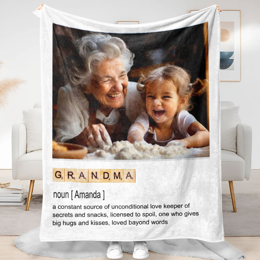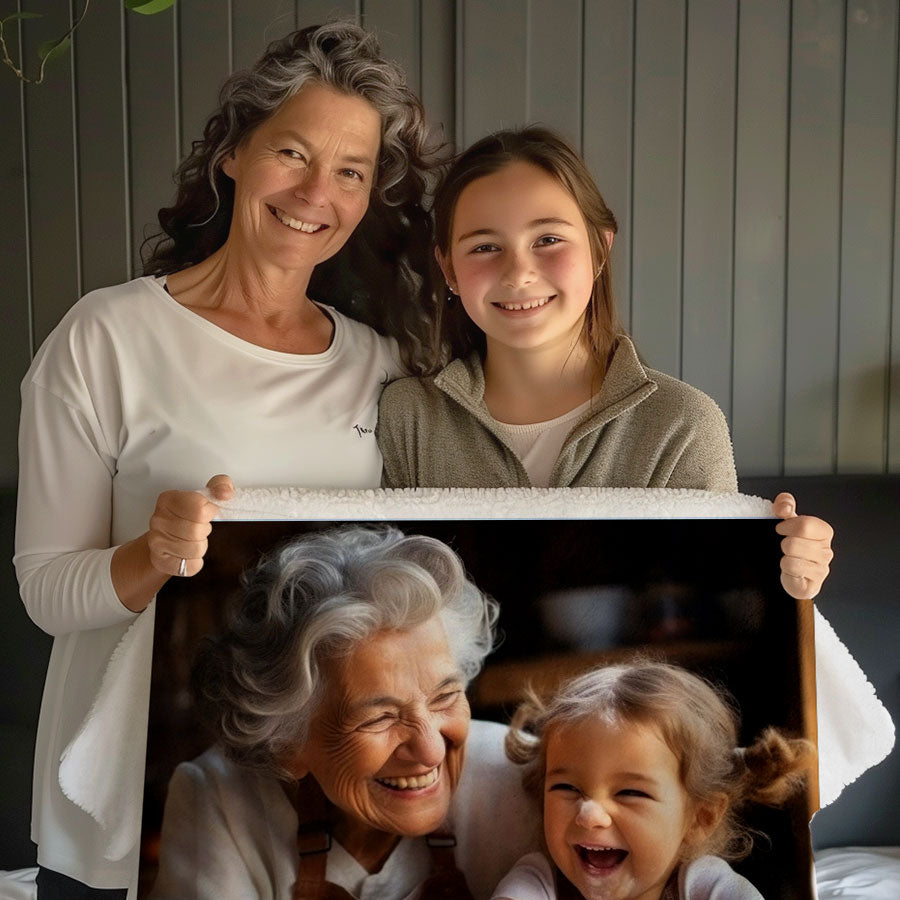 Wrap your grandma in love and warmth with our grandma photo blanket. This isn't just any ordinary gift – these are heartfelt personalized gifts for grandma that will make her feel cherished and appreciated.