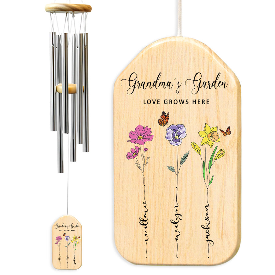 Treat the special grandmother in your life to grandma windchime | personalized mothers day gifts for grandma with lasting meaning. Purchase this memorable windchime today and create memories that will echo in her heart for seasons to come.