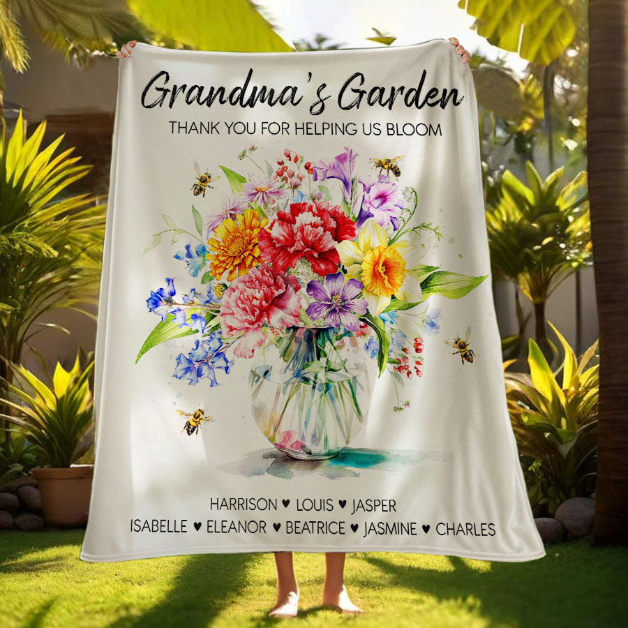 Wrap your grandma in love and warmth with our grandma’s garden blanket | grandma’s garden birth flowers gifts. This isn't just any ordinary gift – these are heartfelt personalized gifts for grandma that will make her feel cherished and appreciated.