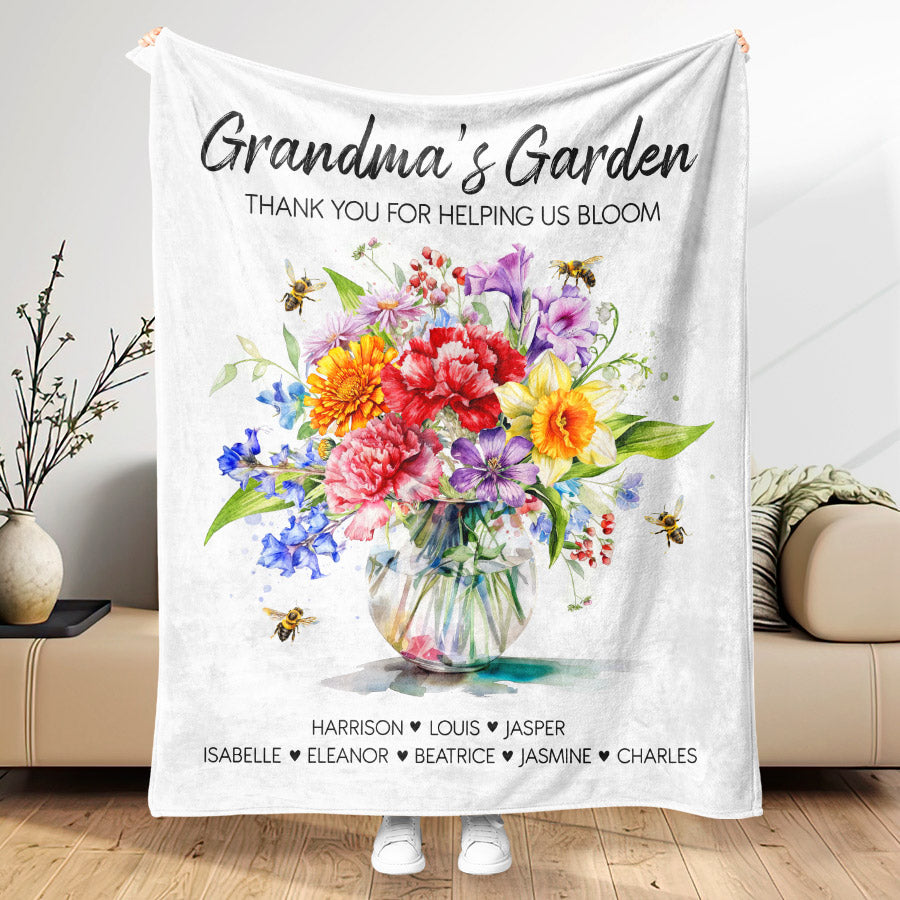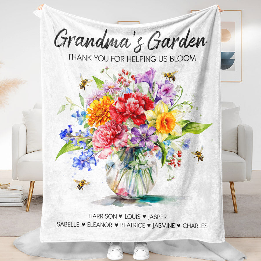 Personalised Grandma Blanket | Custom Grandma'S Garden Blanket With Birth Month Flowers | Mothers Day Personalised Gifts For Grandma
