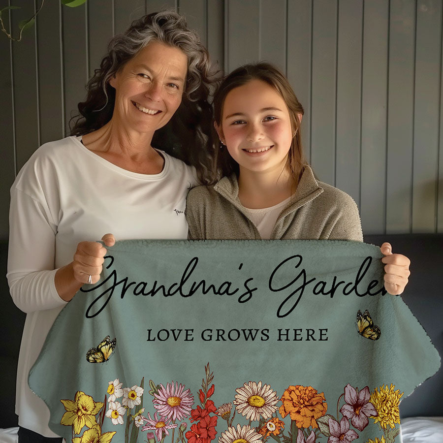 Wrap your grandma in love and warmth with our grandma’s garden blanket | custom grandma’s garden birth flowers gift. This isn't just any ordinary gift – these are heartfelt personalized gifts for grandma that will make her feel cherished and appreciated.