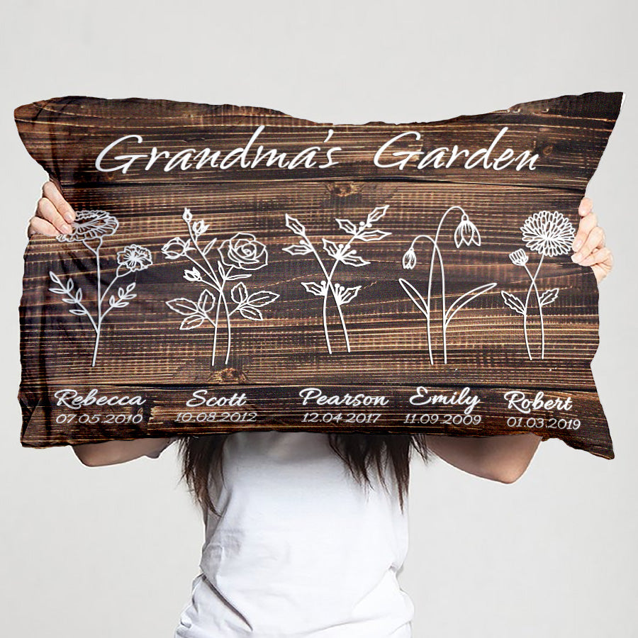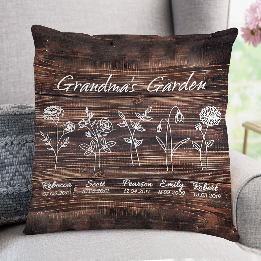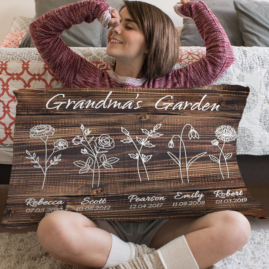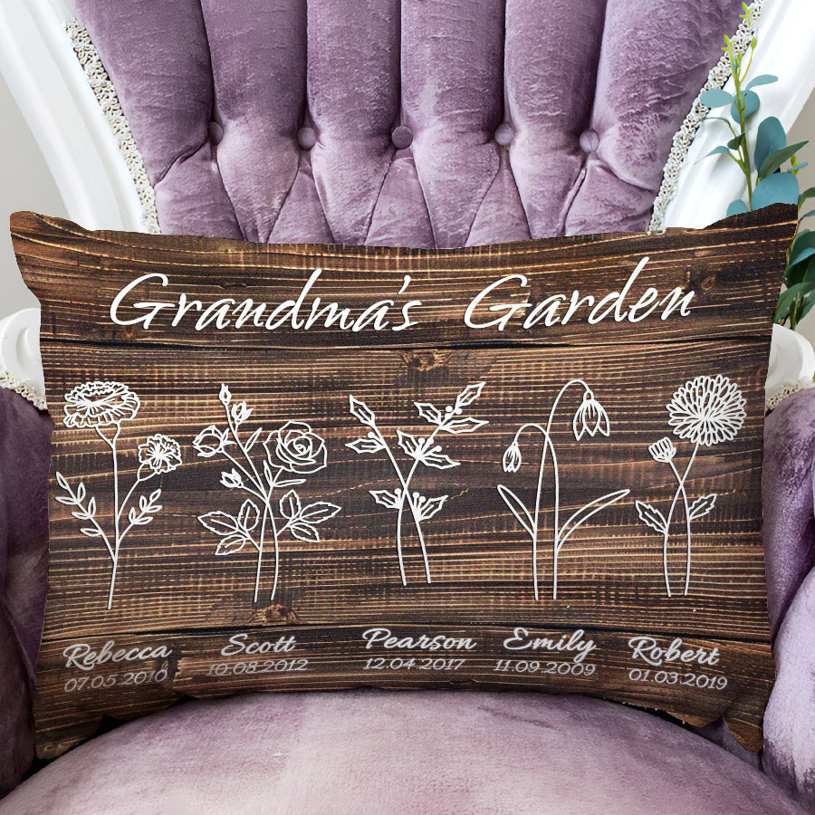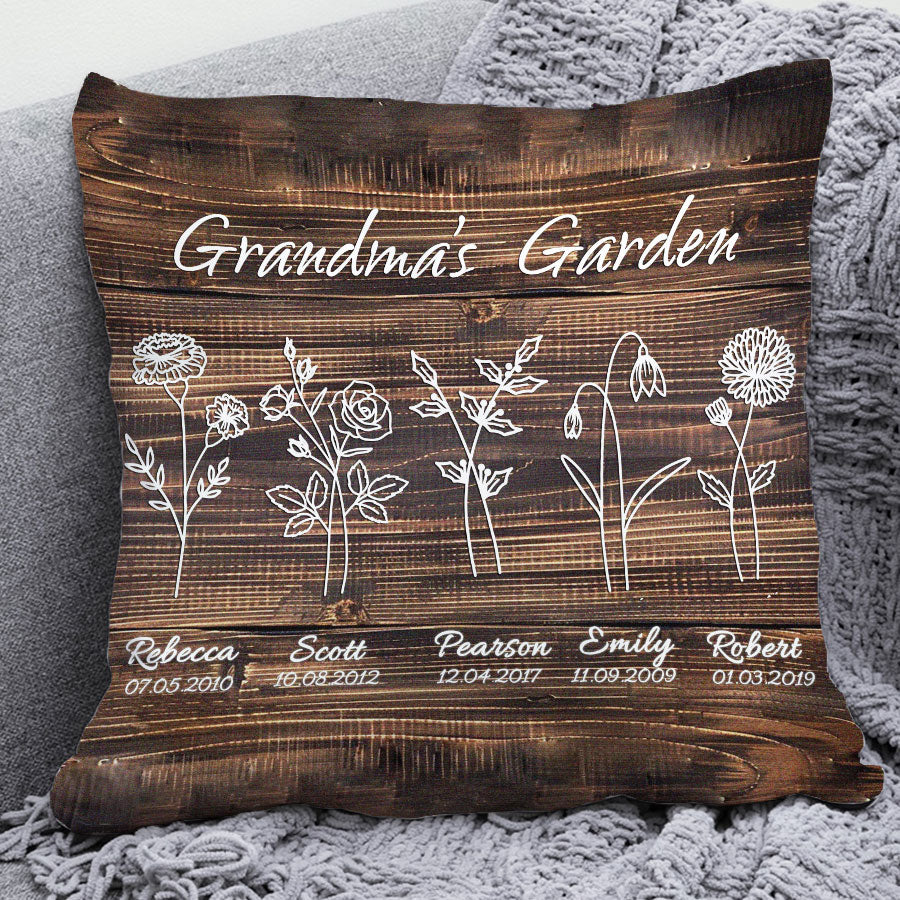 Grandmas Garden Pillow | Personalized Mothers Day Gifts For Grandma | Personalized Grandmas Garden Pillow With Grandkids Names