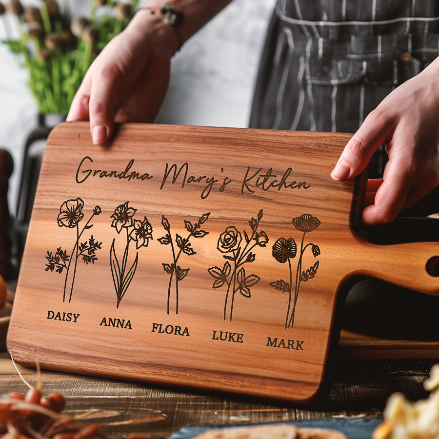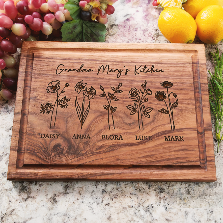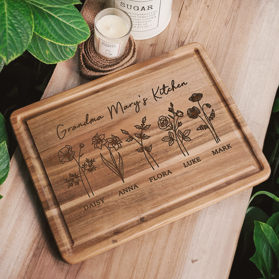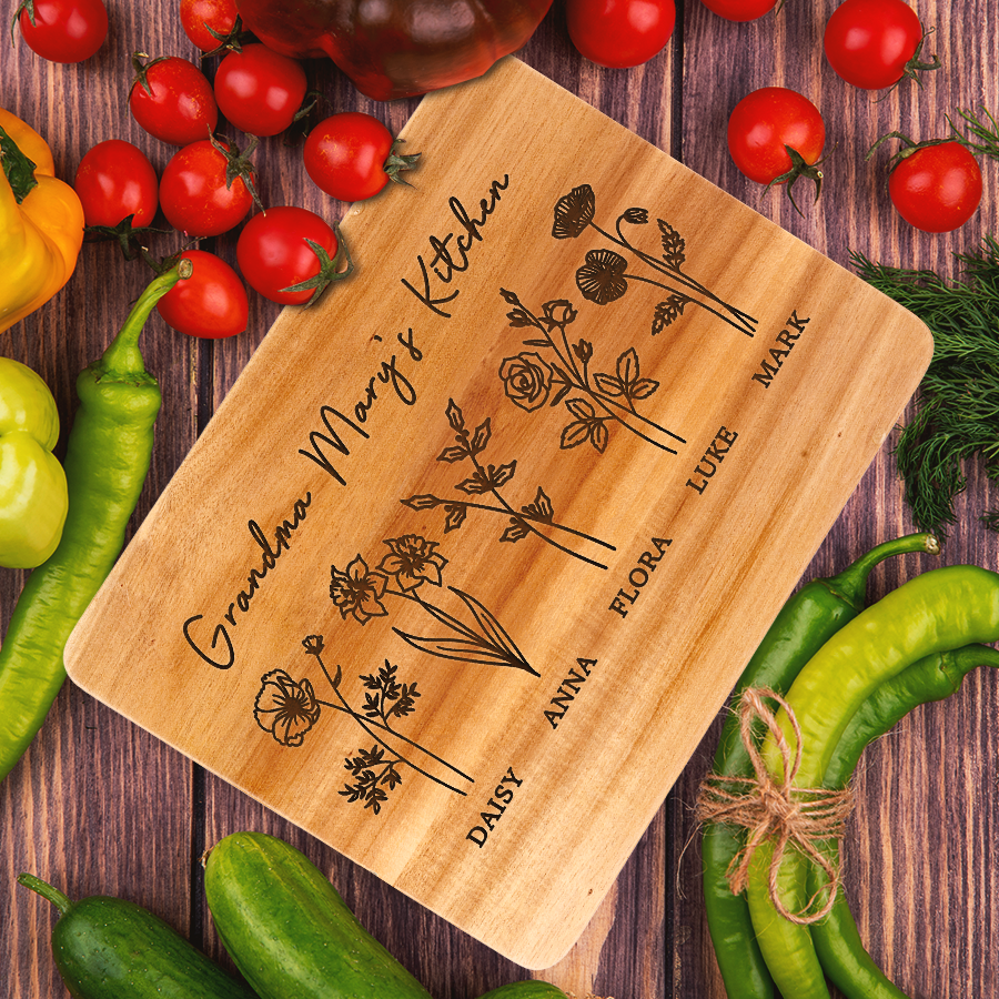Grandma’S Kitchen Cutting Board | Mothers Day Personalised Gifts For Grandma Birth Flower Garden | Custom Gift For Grandma