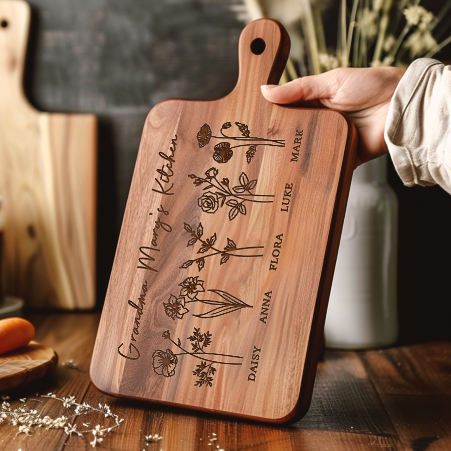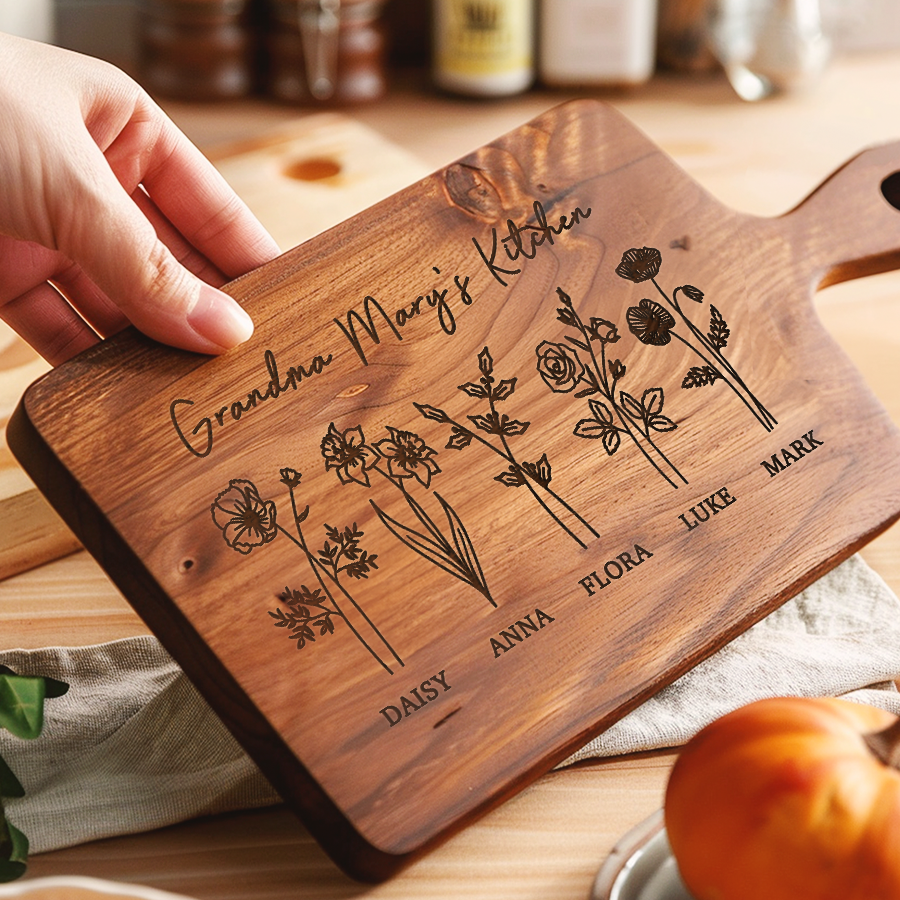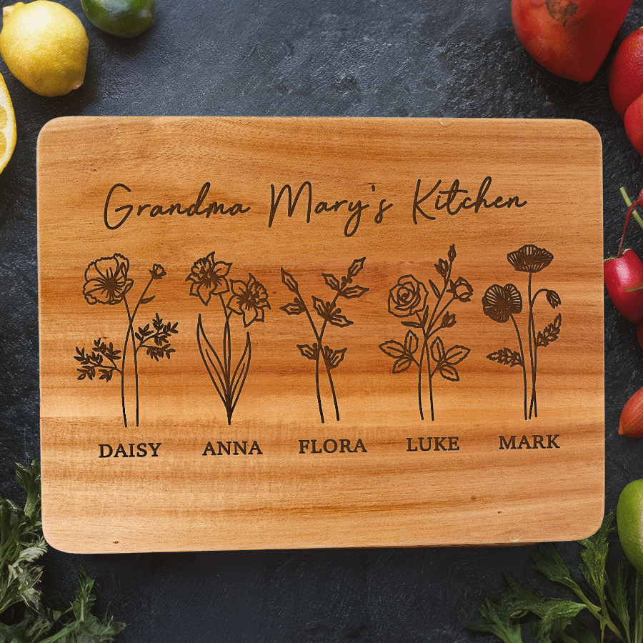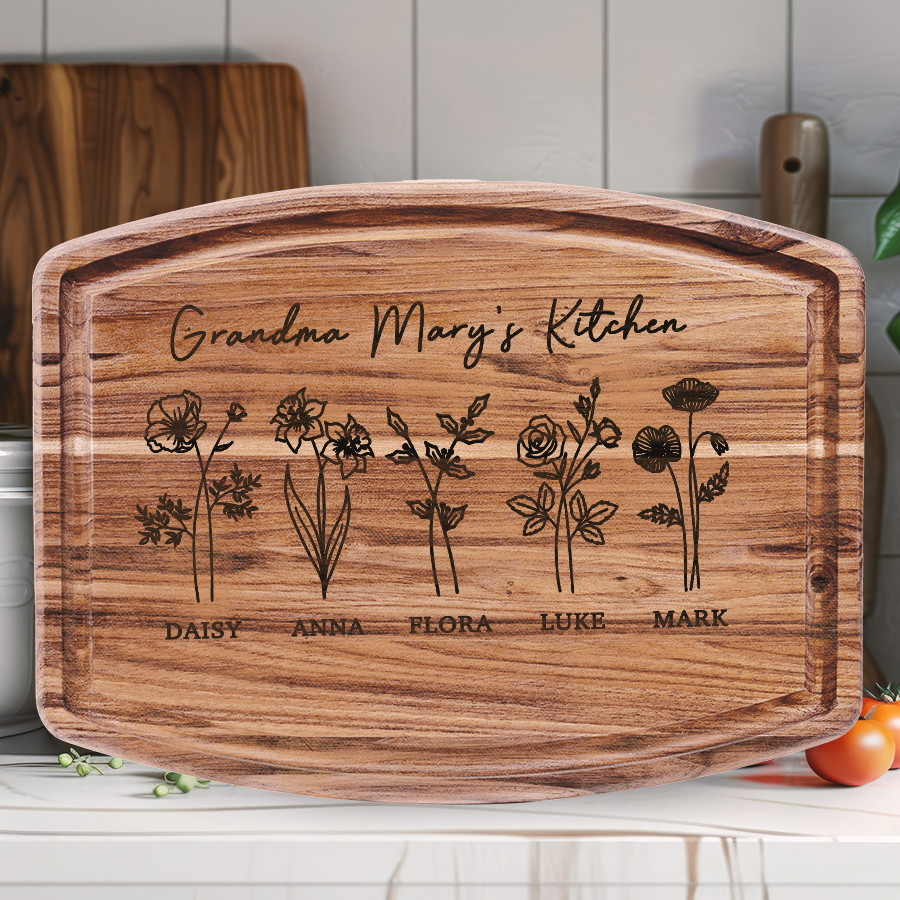 Grandma’S Kitchen Cutting Board | Mothers Day Personalised Gifts For Grandma Birth Flower Garden | Custom Gift For Grandma
